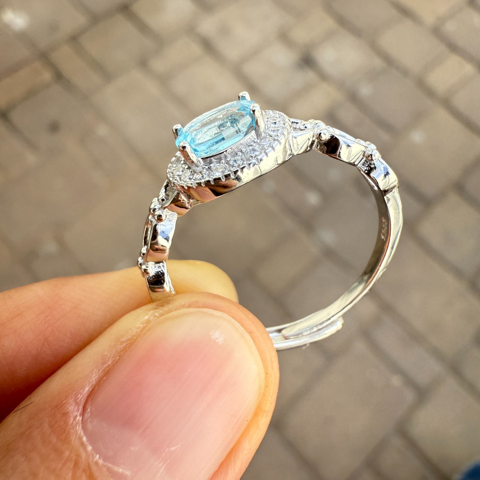 как выглядит 925 Sterling Silver Ring 6x4mm Natural Blue Topaz Gemstone Zircon Chain Jewelry фото