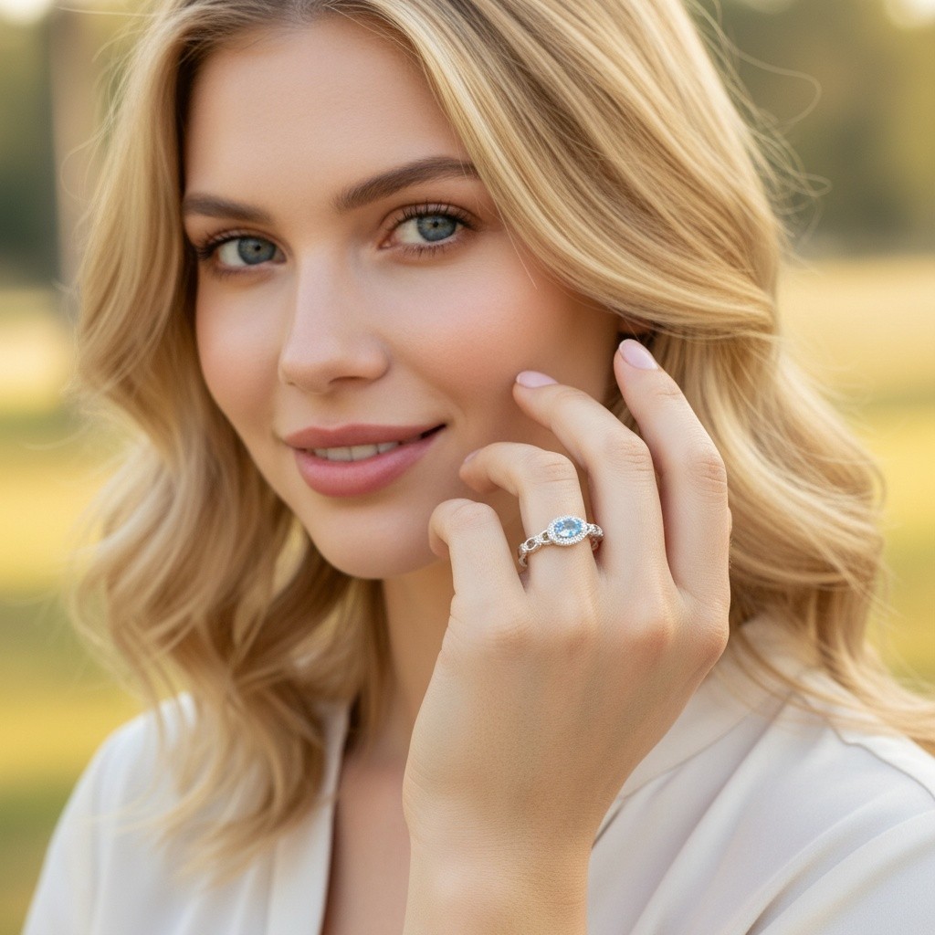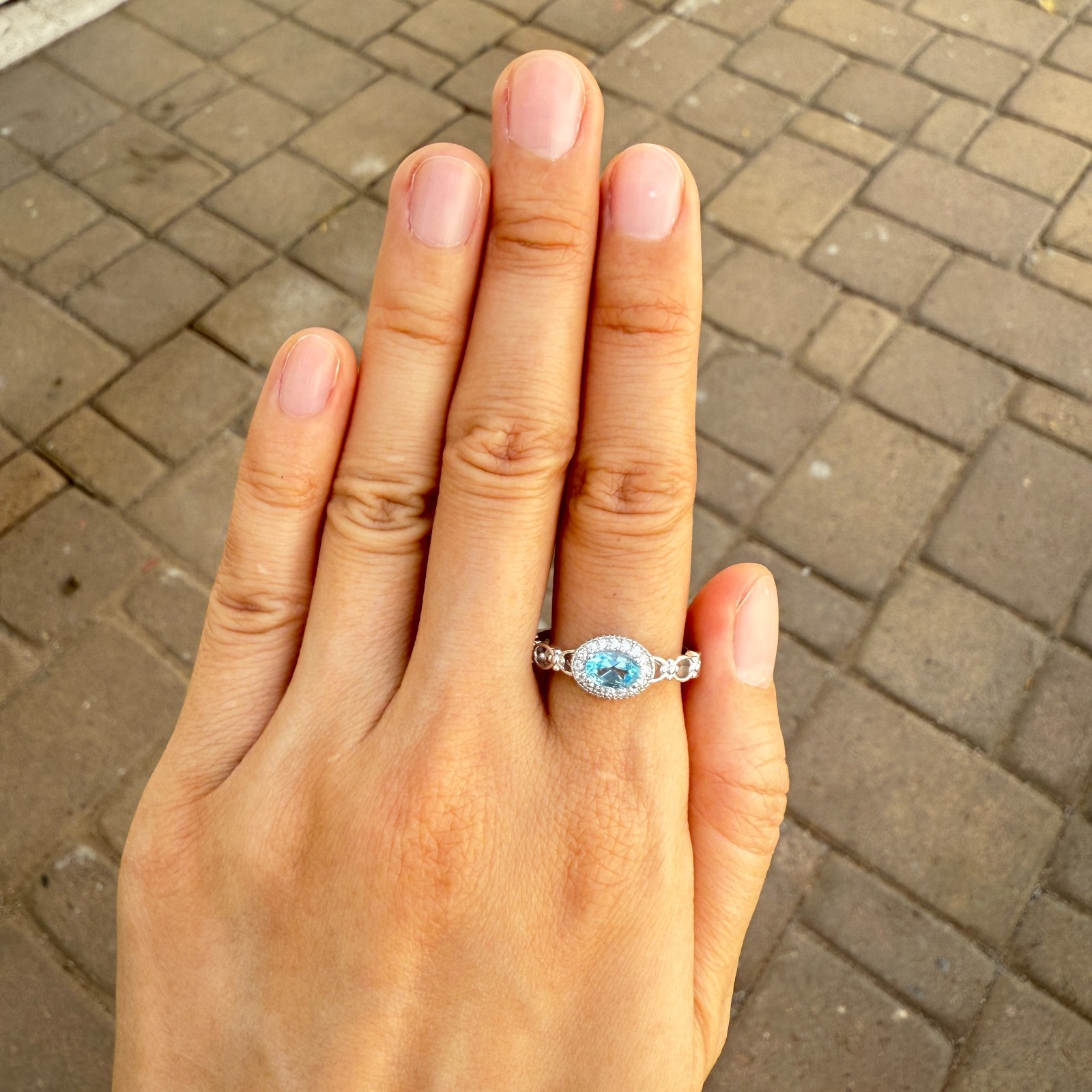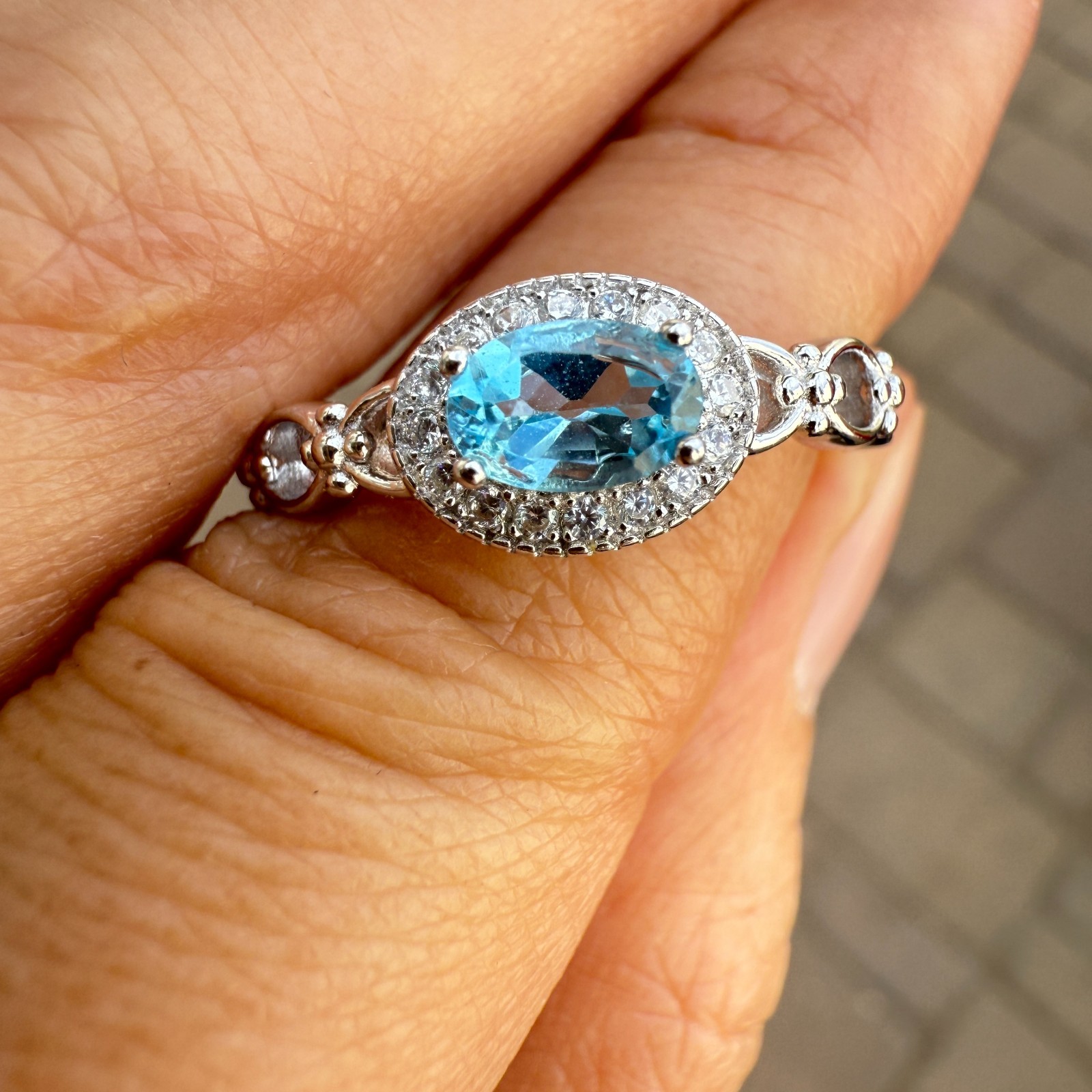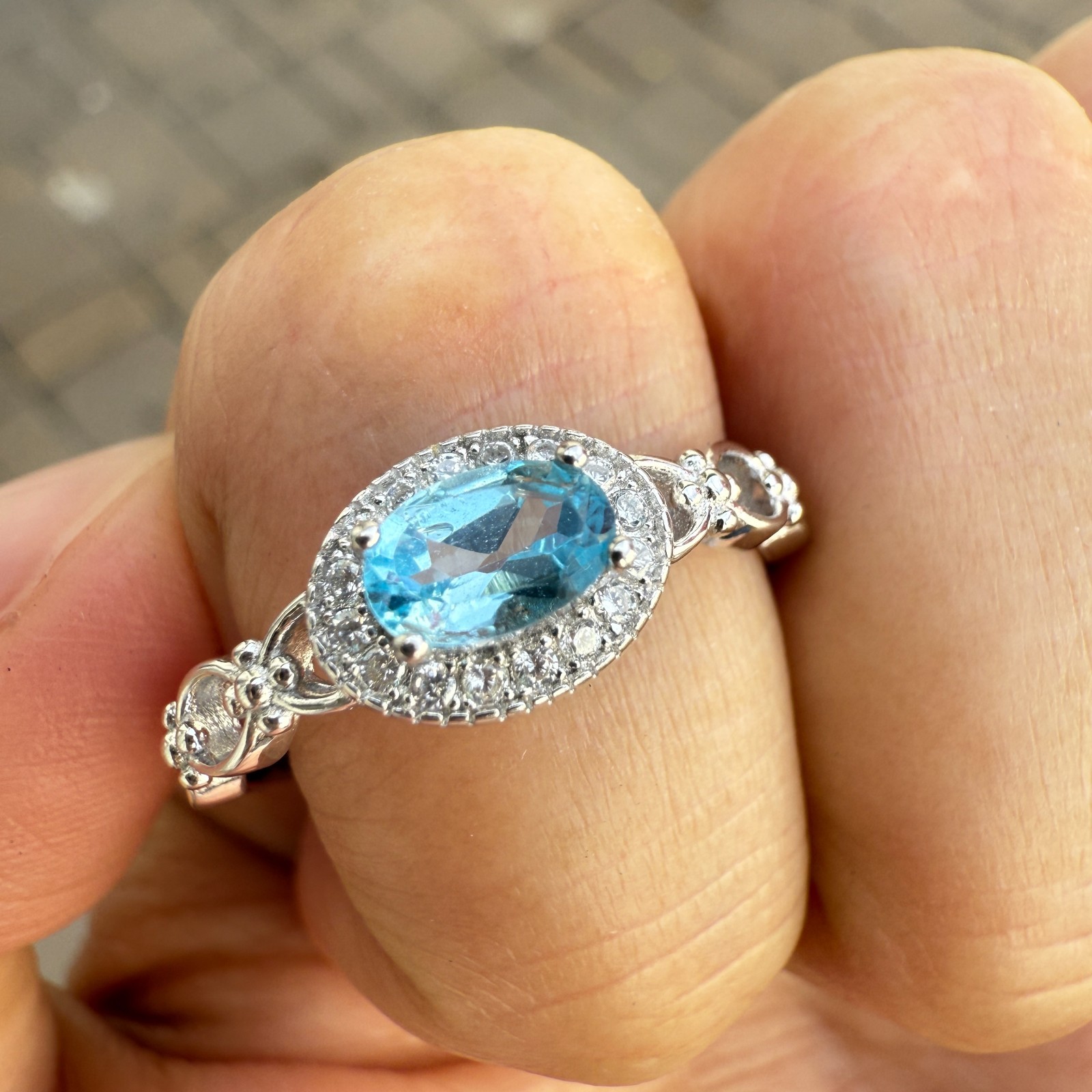 925 Sterling Silver Ring 6x4mm Natural Blue Topaz Gemstone Zircon Chain Jewelry