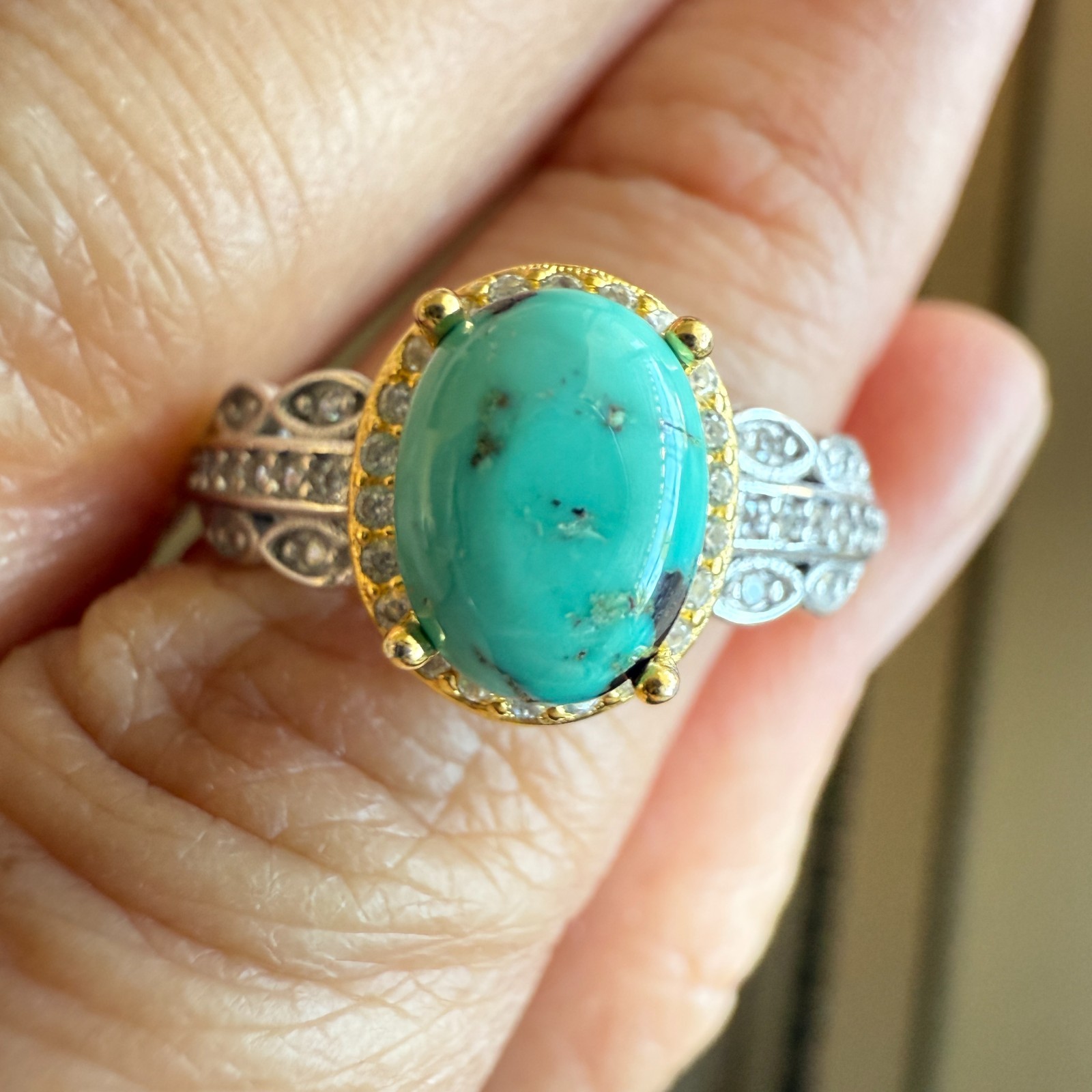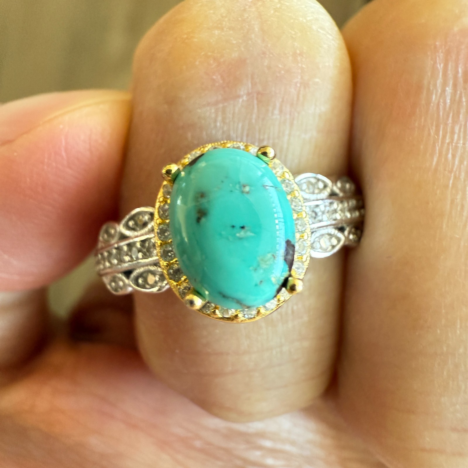 925 Sterling Silver Ring 7x5mm Natural Turquoise Gemstone Zircon Women Jewelry