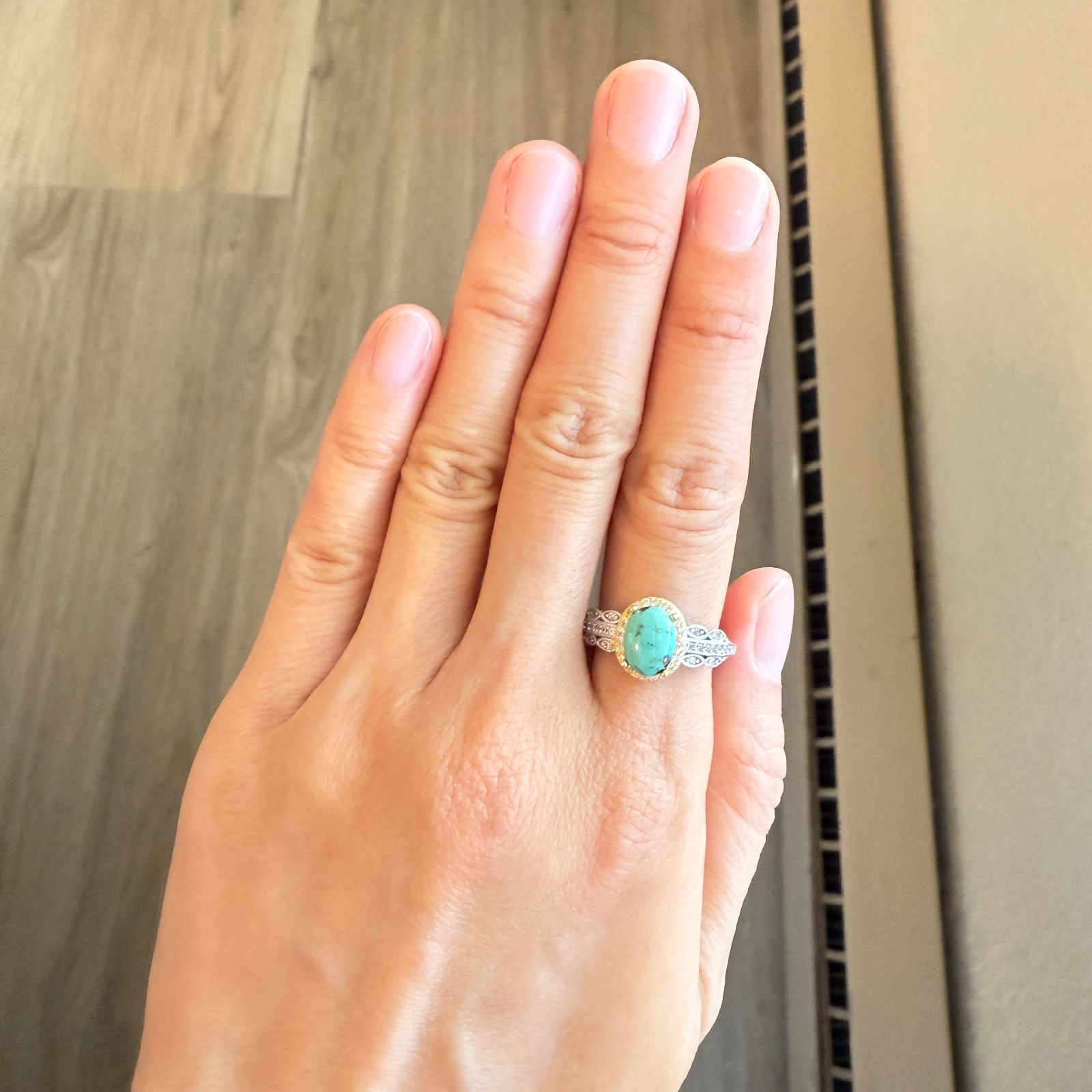как выглядит 925 Sterling Silver Ring 7x5mm Natural Turquoise Gemstone Zircon Women Jewelry фото