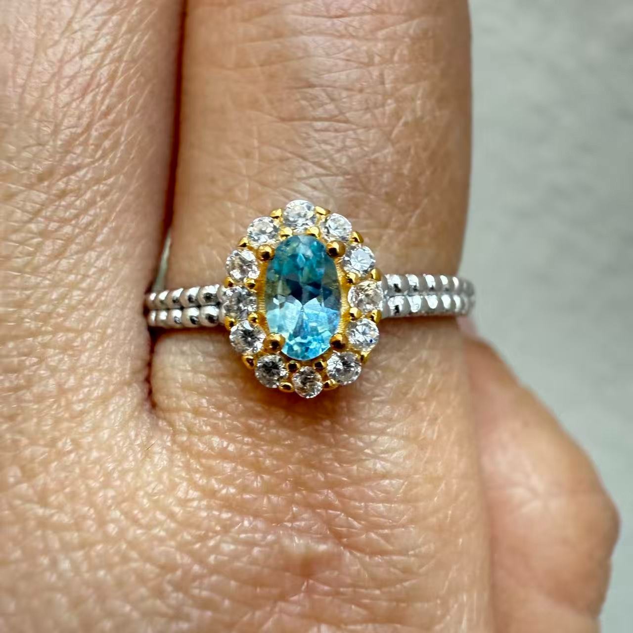как выглядит 925 Sterling Silver Ring Blue 5x3mm Natural Topaz Gemstone Zircon Jewelry Gift фото