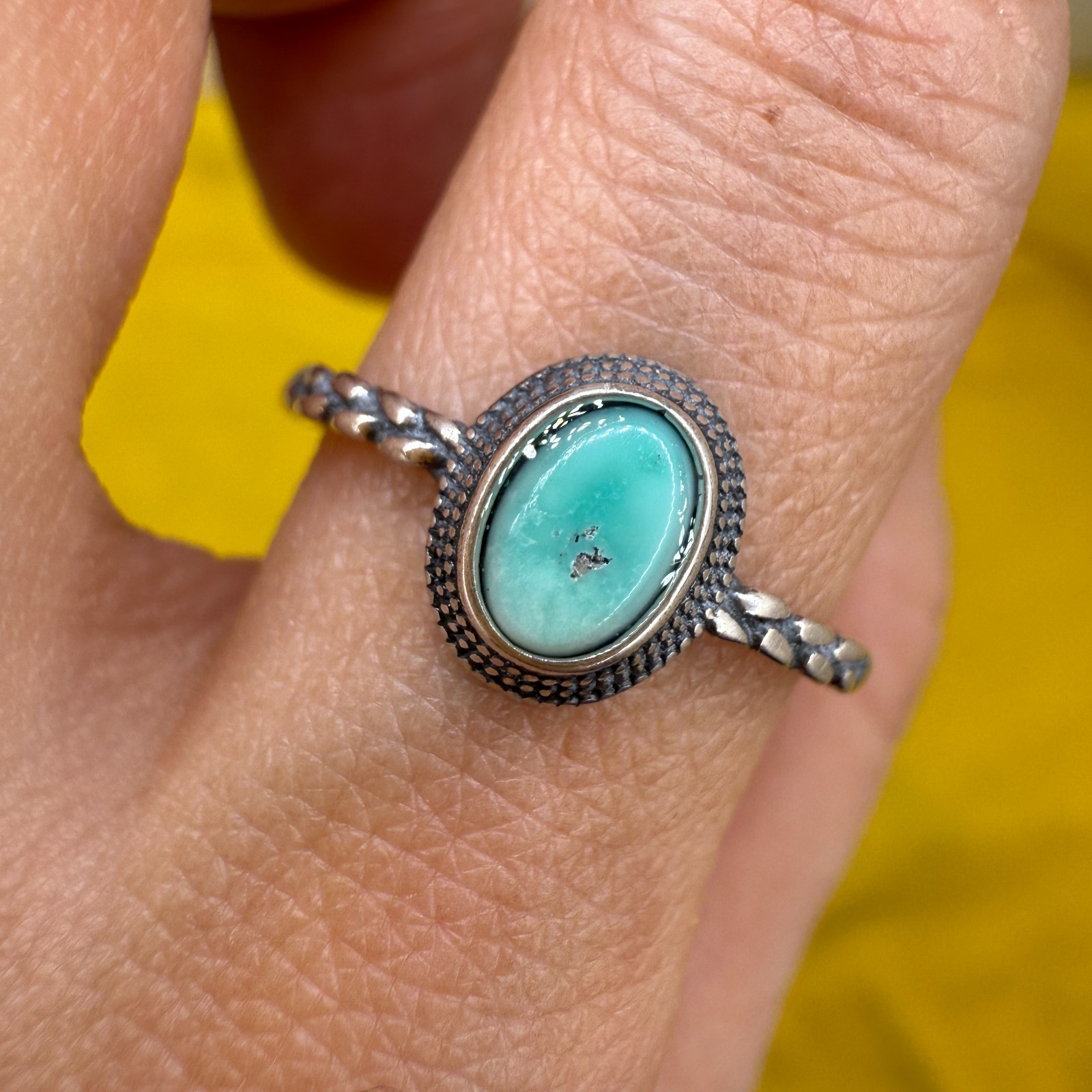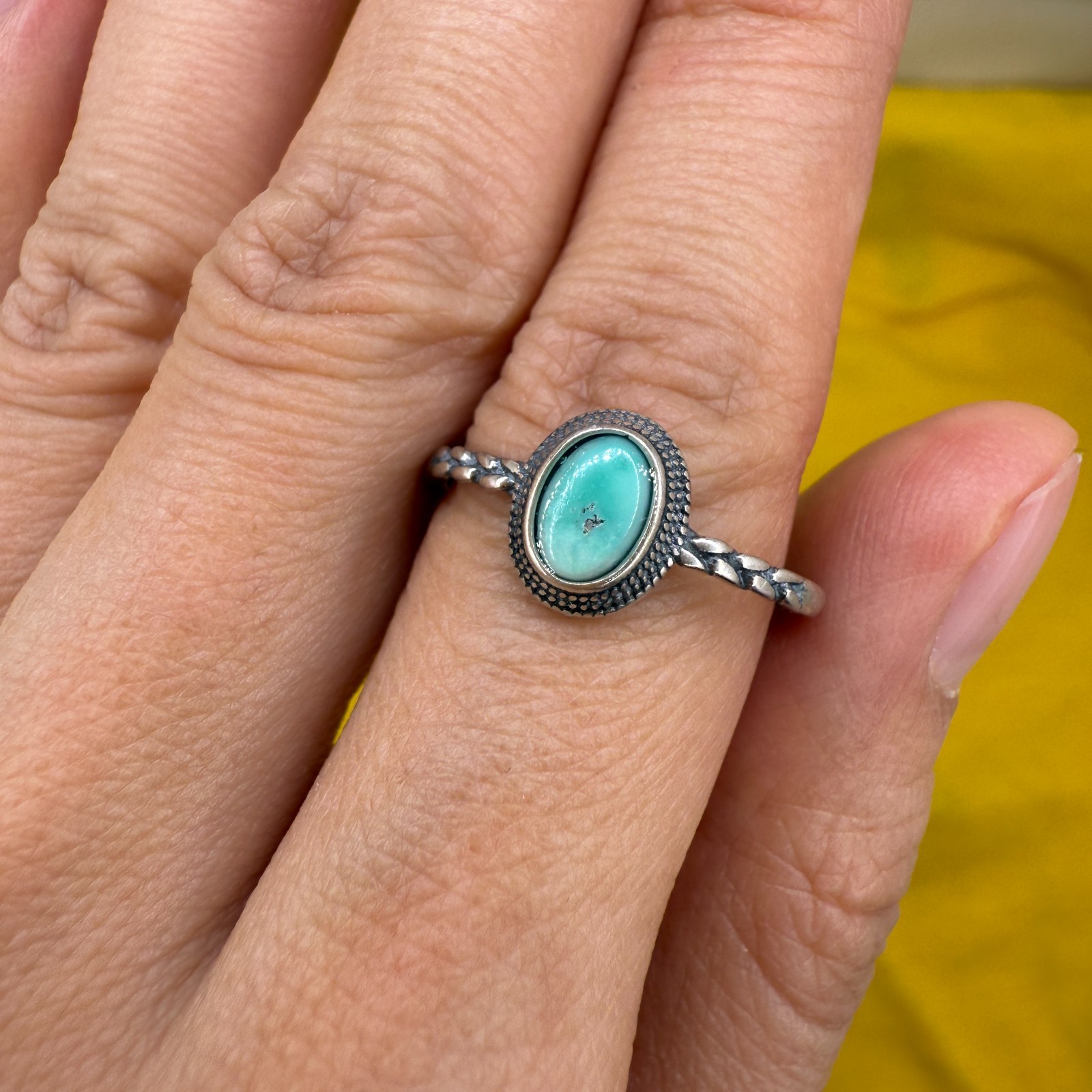 925 Sterling Silver Ring Oval Turquoise 6x4mm Natural Blue Gemstone Jewelry