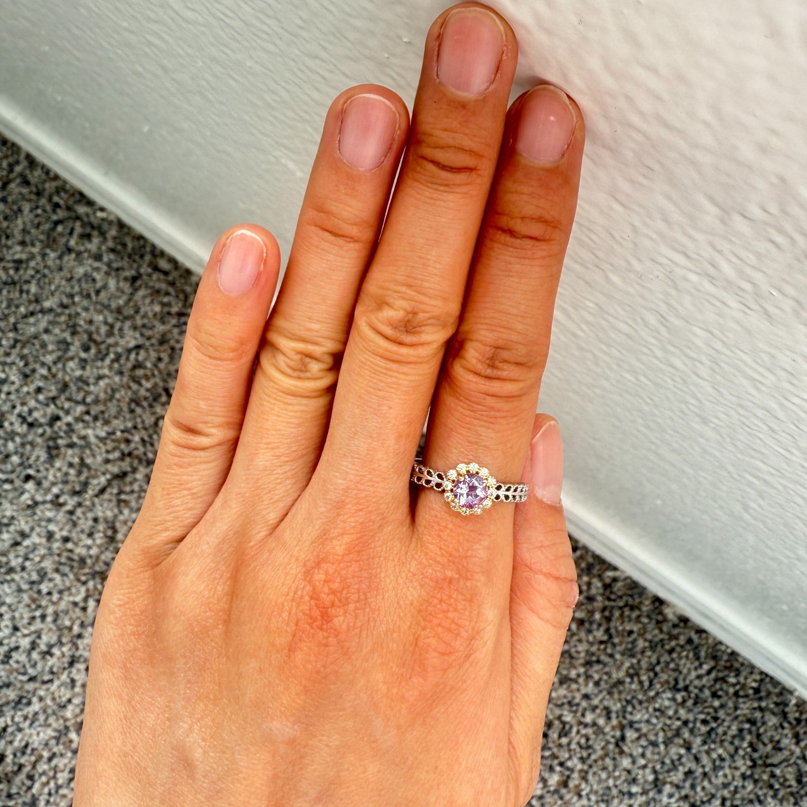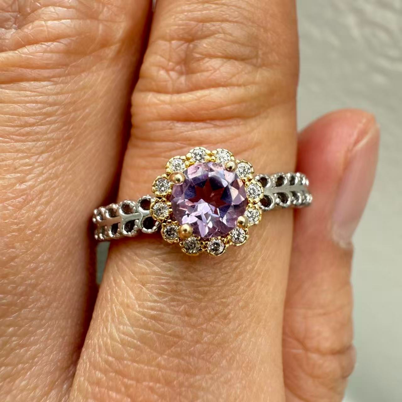 925 Sterling Silver Ring 5mm Natural Purple Amethyst Gemstone Zircon Flower
