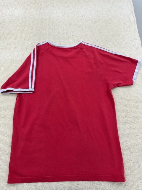 как выглядит Adidas Originals Red Striped Cotton T-Shirt Crew Neck Short Sleeve L фото