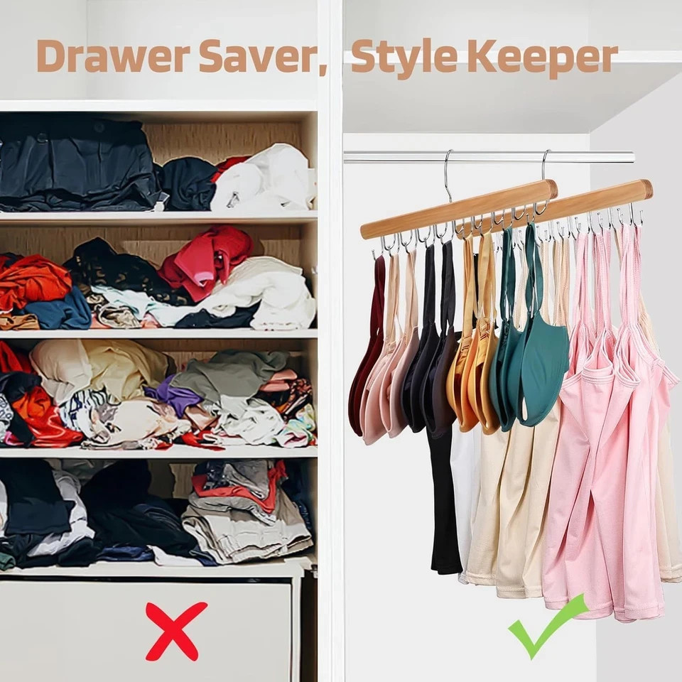 2 Pack Bra Hanger for Closet Organizer, Premium Wooden Tank Standard, Natural