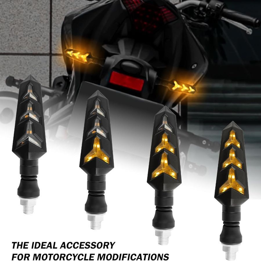 • 4PCS LED Motorcycle Turn Signals with Flowing Light Design, Amber Y-arrow Motorc