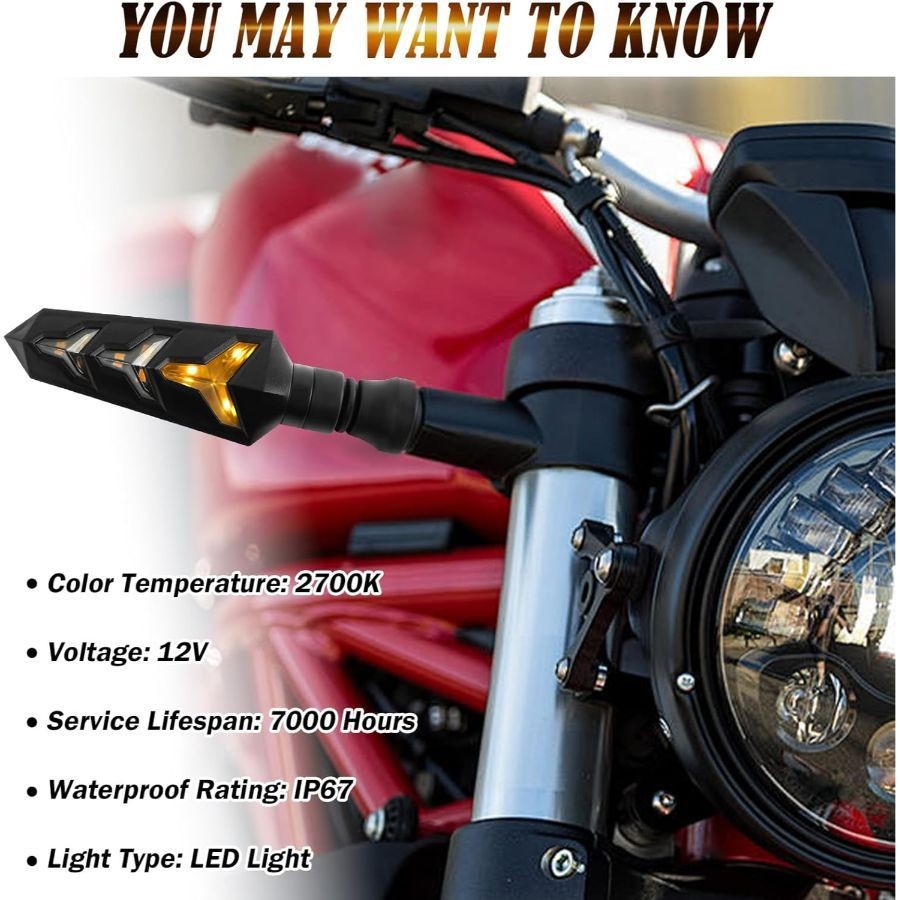 4PCS LED Motorcycle Turn Signals with Flowing Light Design, Amber Y-arrow Motorc