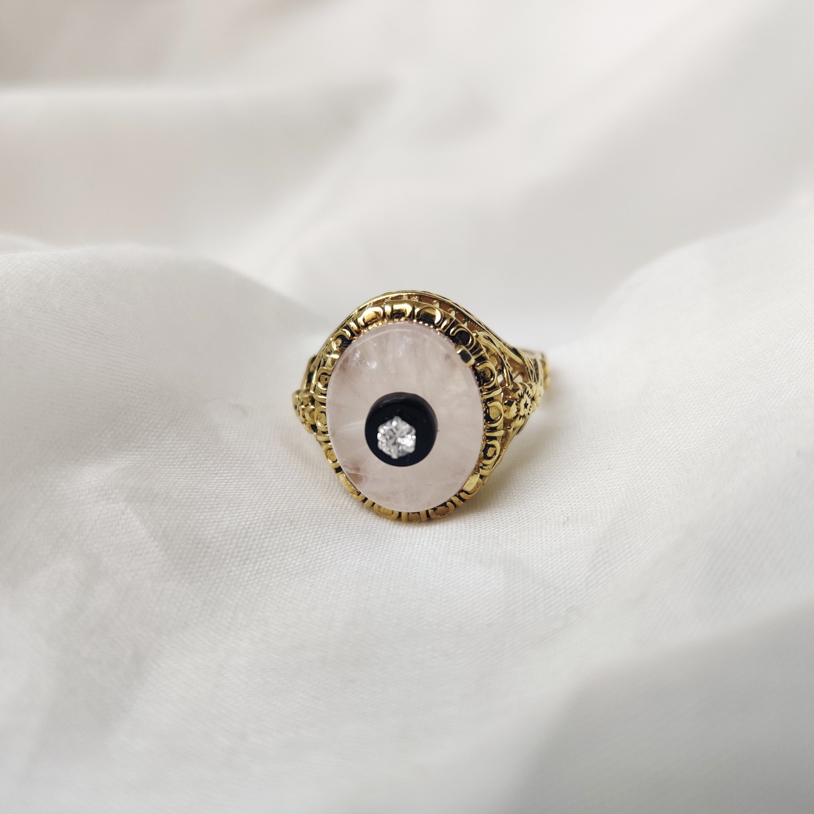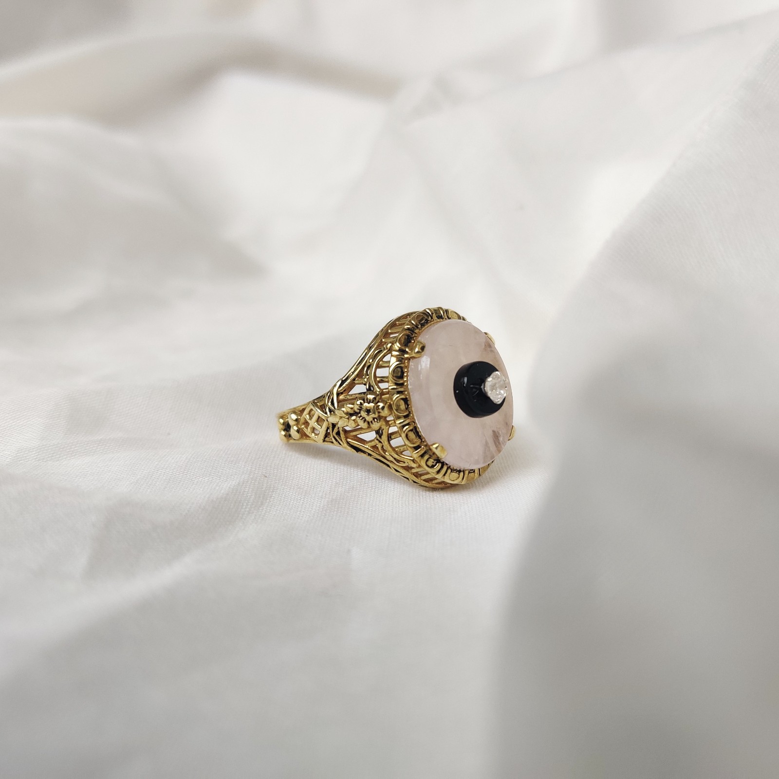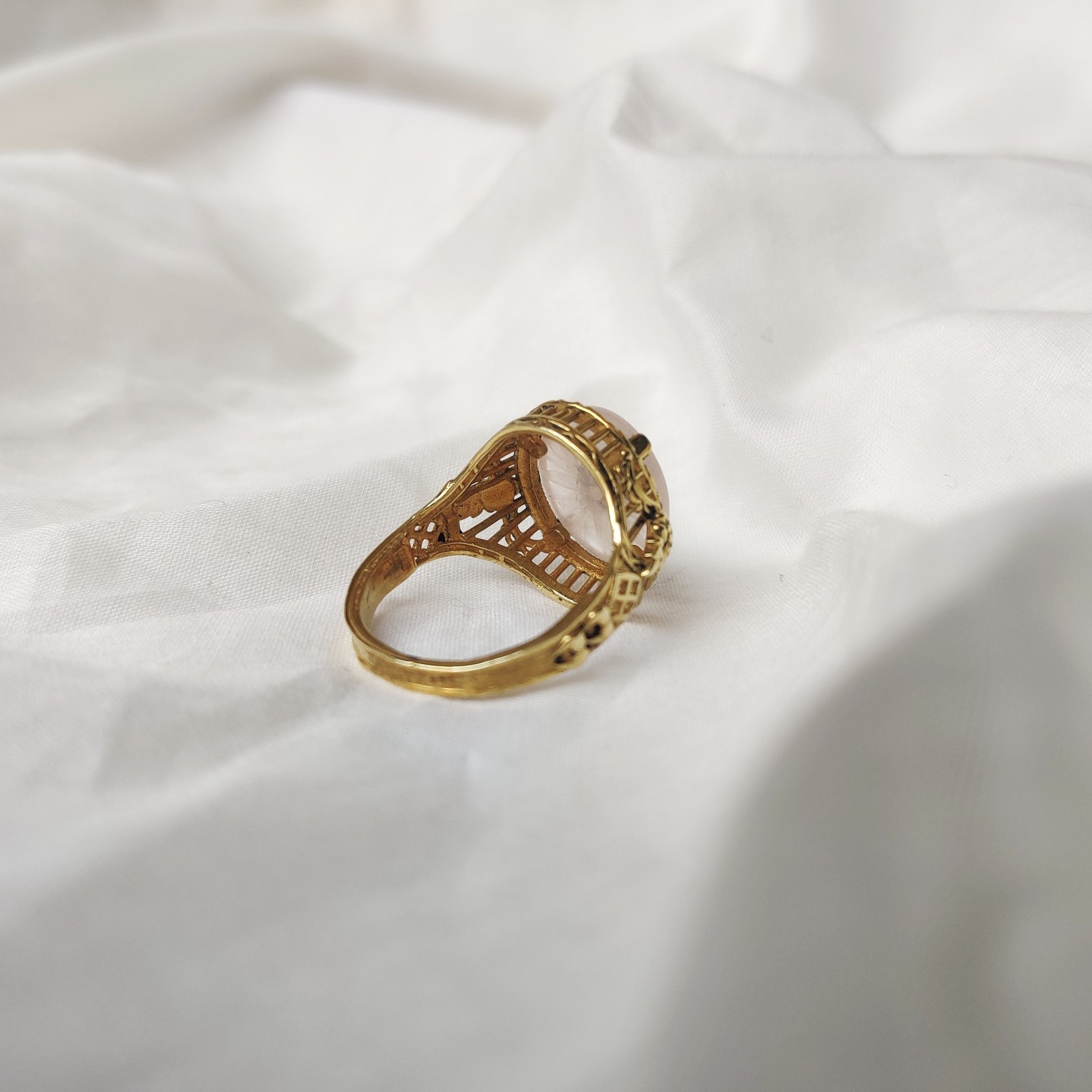 как выглядит 925 Silver Ring Natural Rose Quartz Gold Plated Silver Handmade Rose Quartz фото