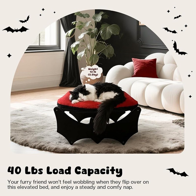 Cat Bed with Bat Design Wooden Elevated Cat Beds with Sisal Scratching Mat
