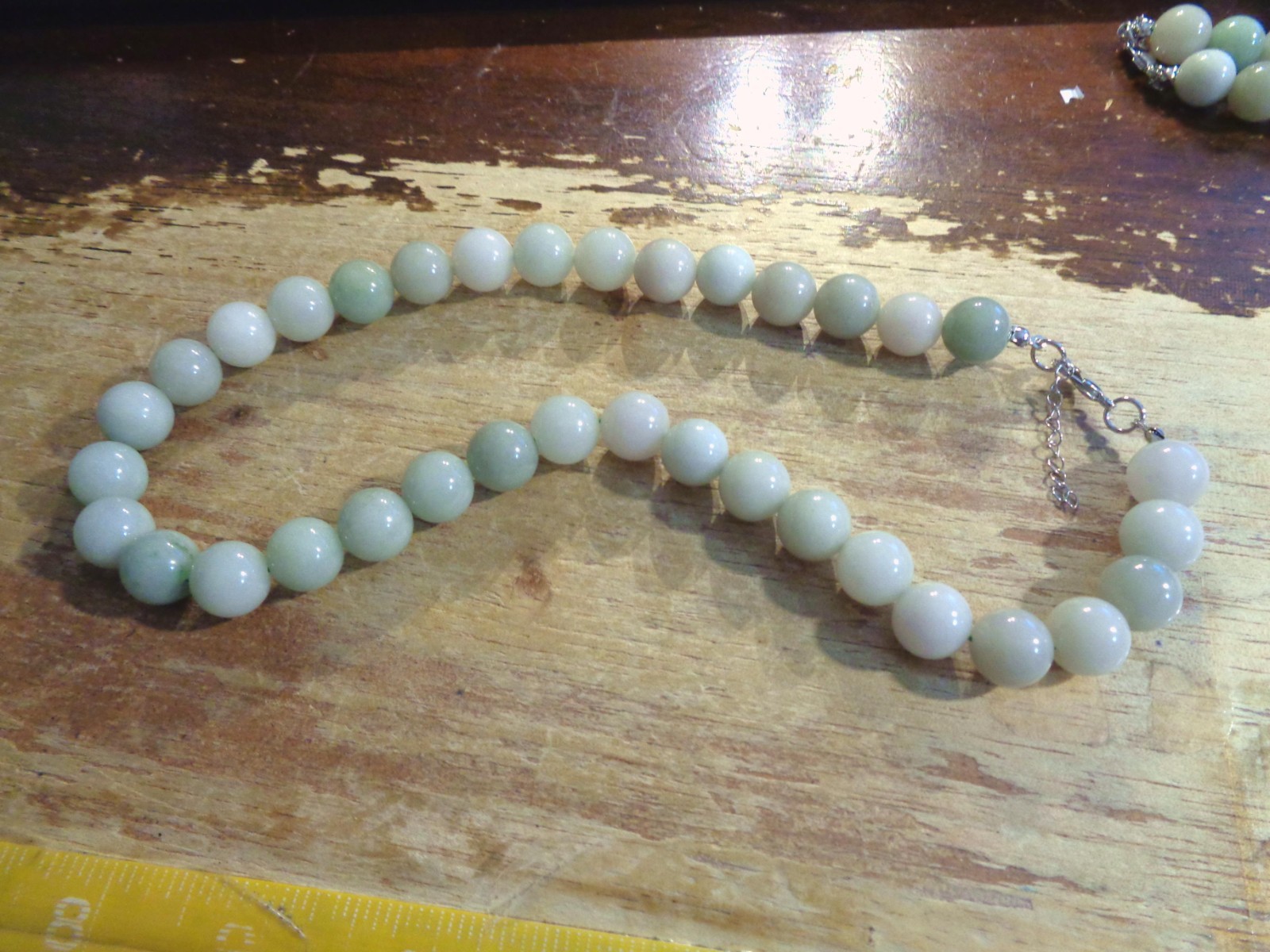 как выглядит 12.5MM MIXED CELADON GREEN LAVENDER JADE JADEITE ROUND BEAD NECKLACE 18-19.5" фото