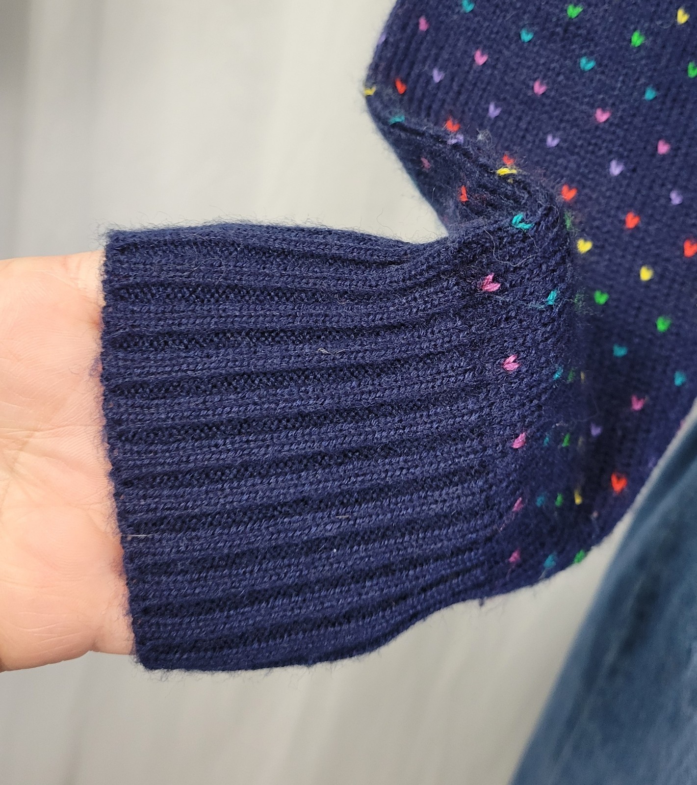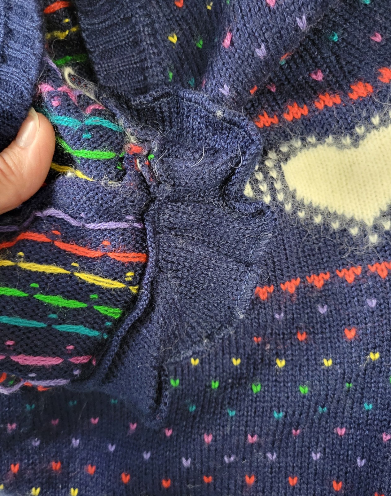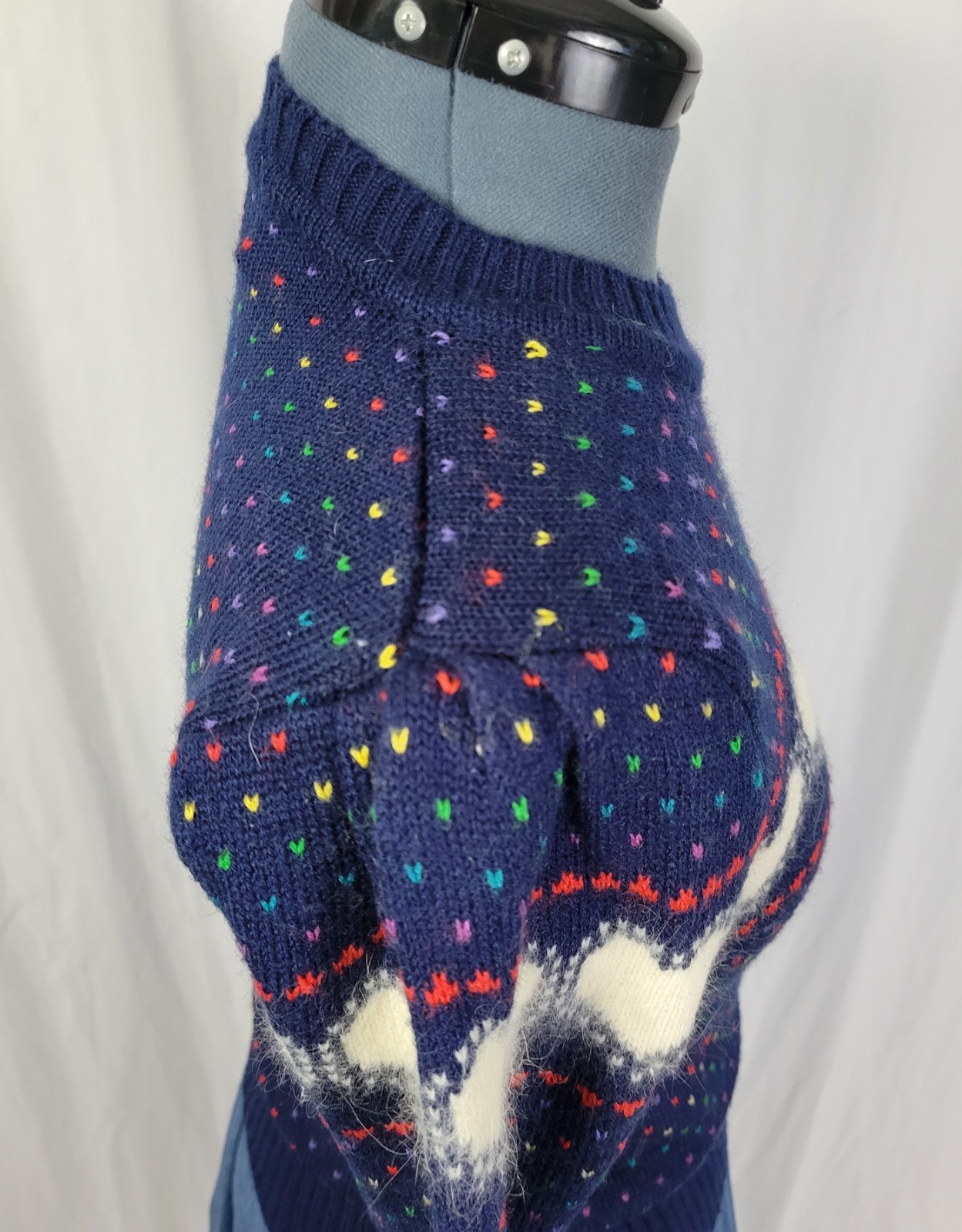 как выглядит Vintage Ricki Navy Blue 1980s Heart Sweater w Shoulder Puffs Size Med фото