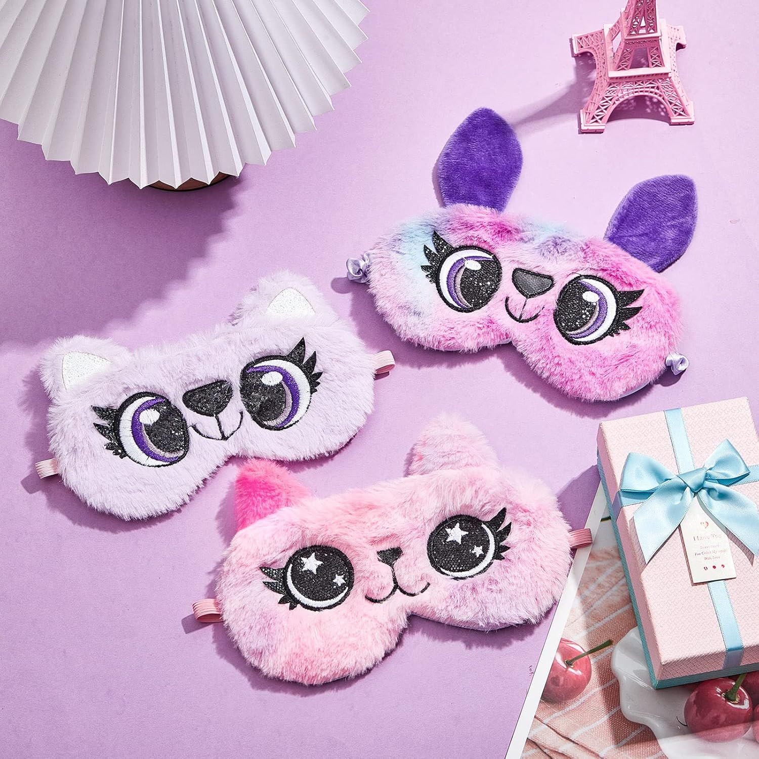 как выглядит 3 Pieces Sleep Mask for Kids, Girls Plush Sleeping Eye Cover Soft Eye Blindfold фото