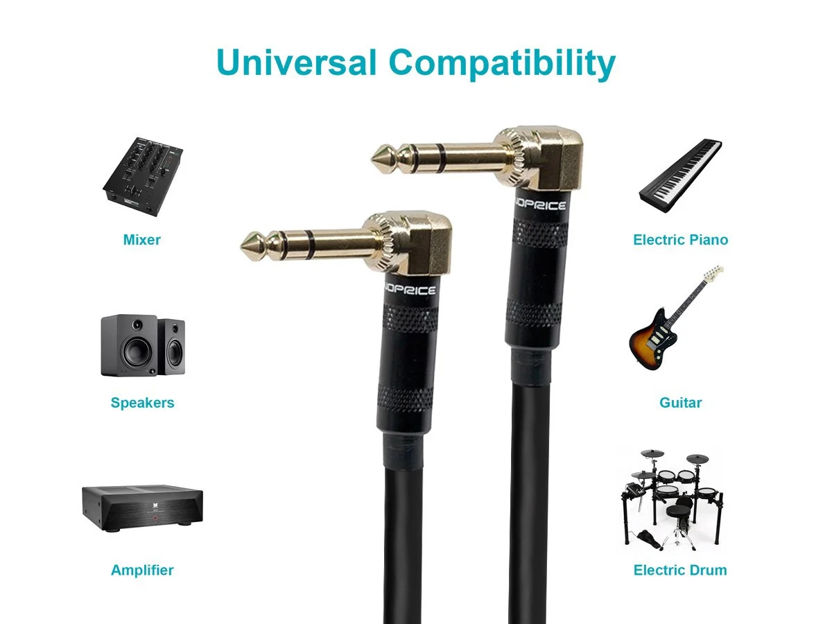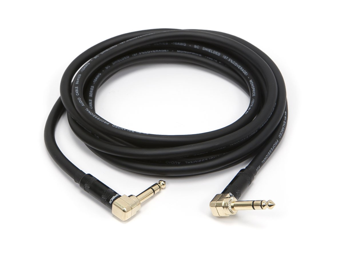 Monoprice 1/4 Inch TRS Right Angle Male to Male 16AWG Cable Cord 10ft Black