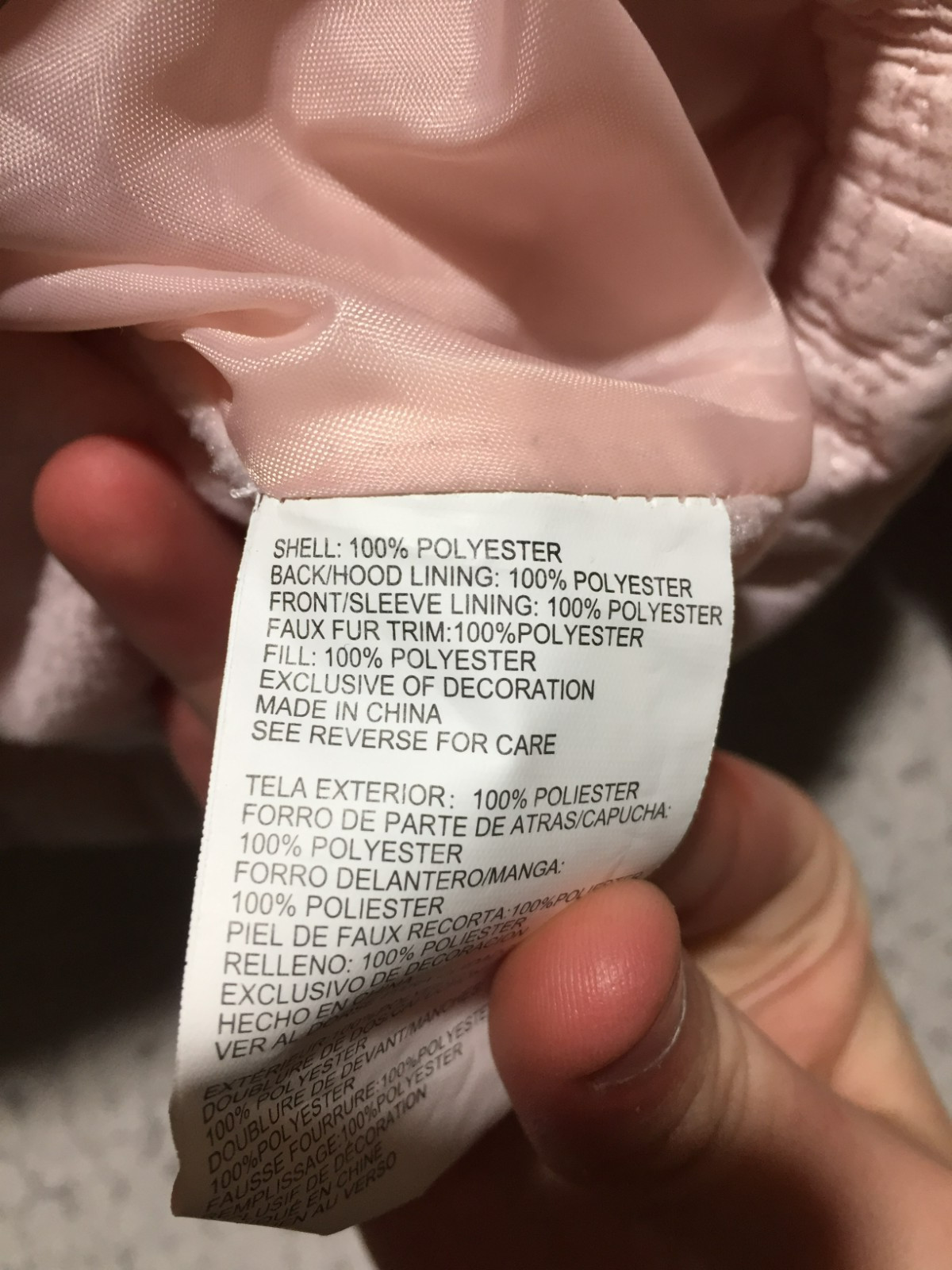 Outer Shell Material: 100% Polyester