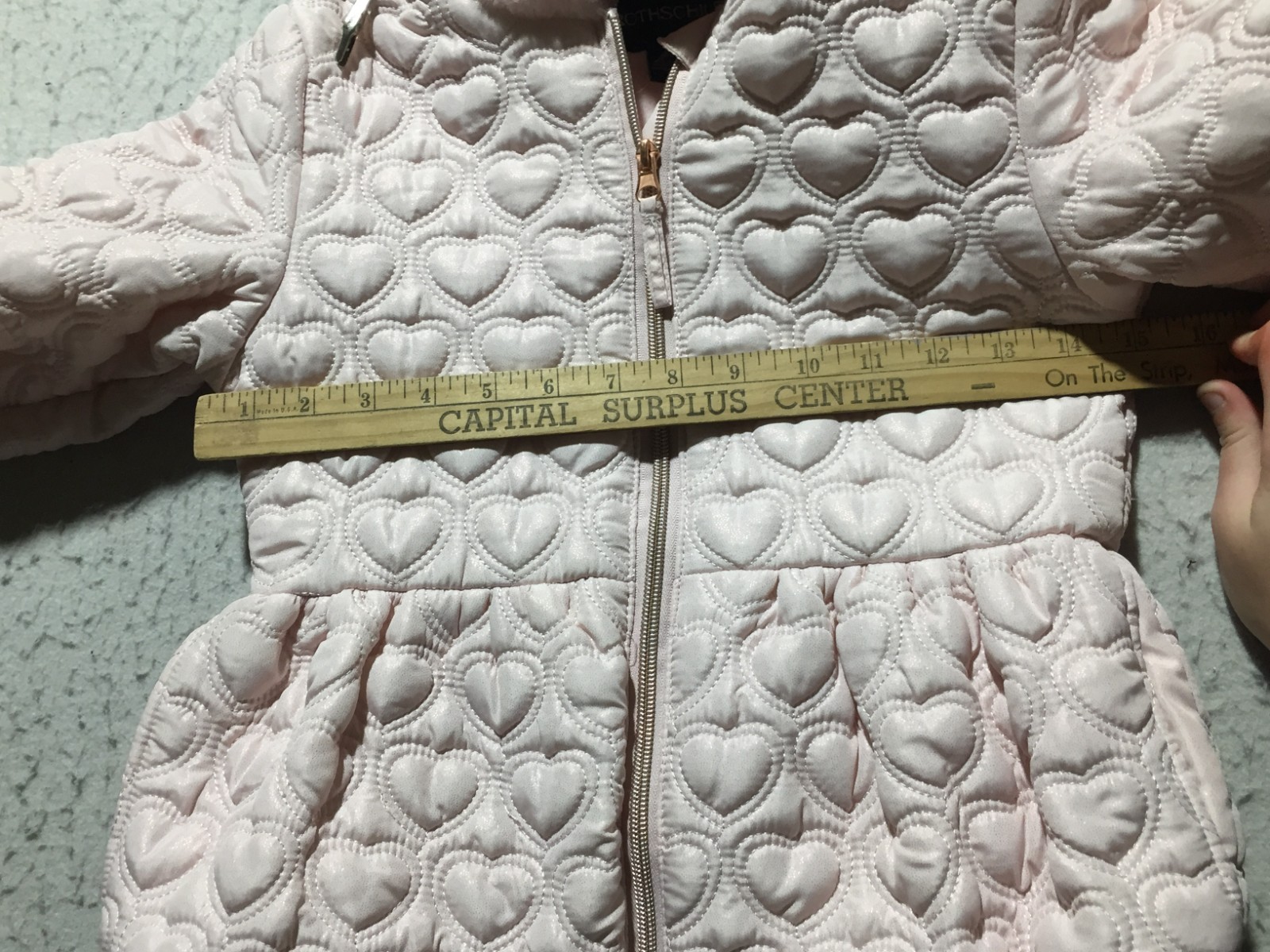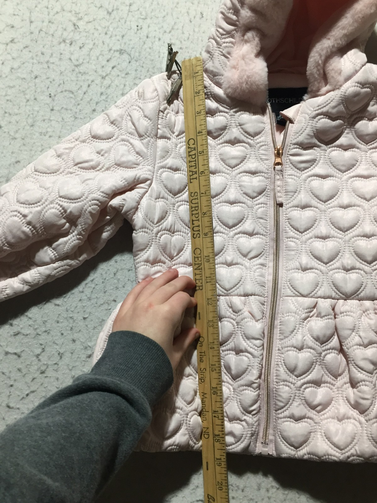 как выглядит Rothschild Puffer Coat Girls M 5/6 Pink Hearts Hoodie Quilted Faux Fur фото