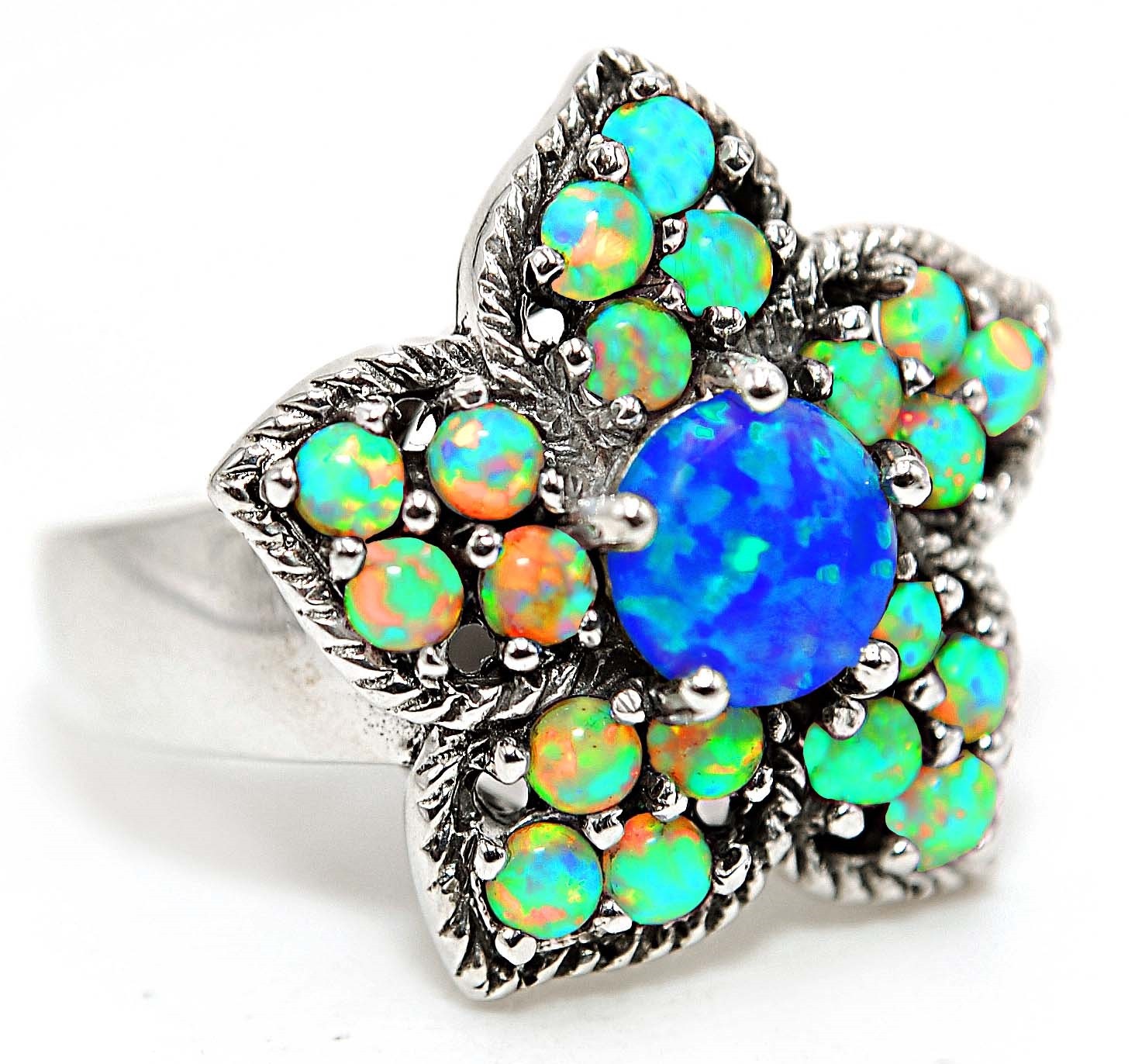 Natural Blue Fire Opal Australian Opal 925 Sterling Silver Ring Sz 7 FB9-5