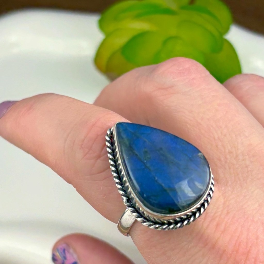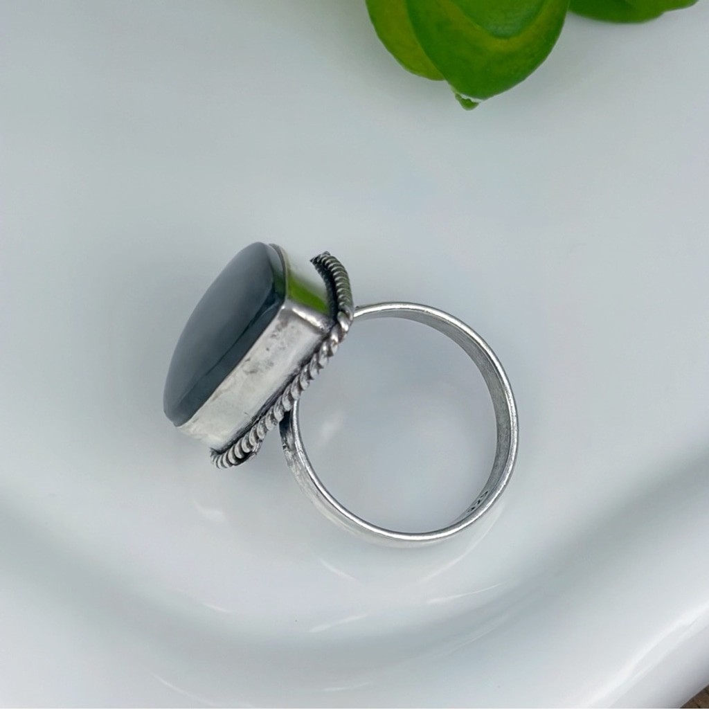 Blue Labradorite Ring Size 9 1/2 9.5 Sterling Silver 925 Overlay Vintage Boho