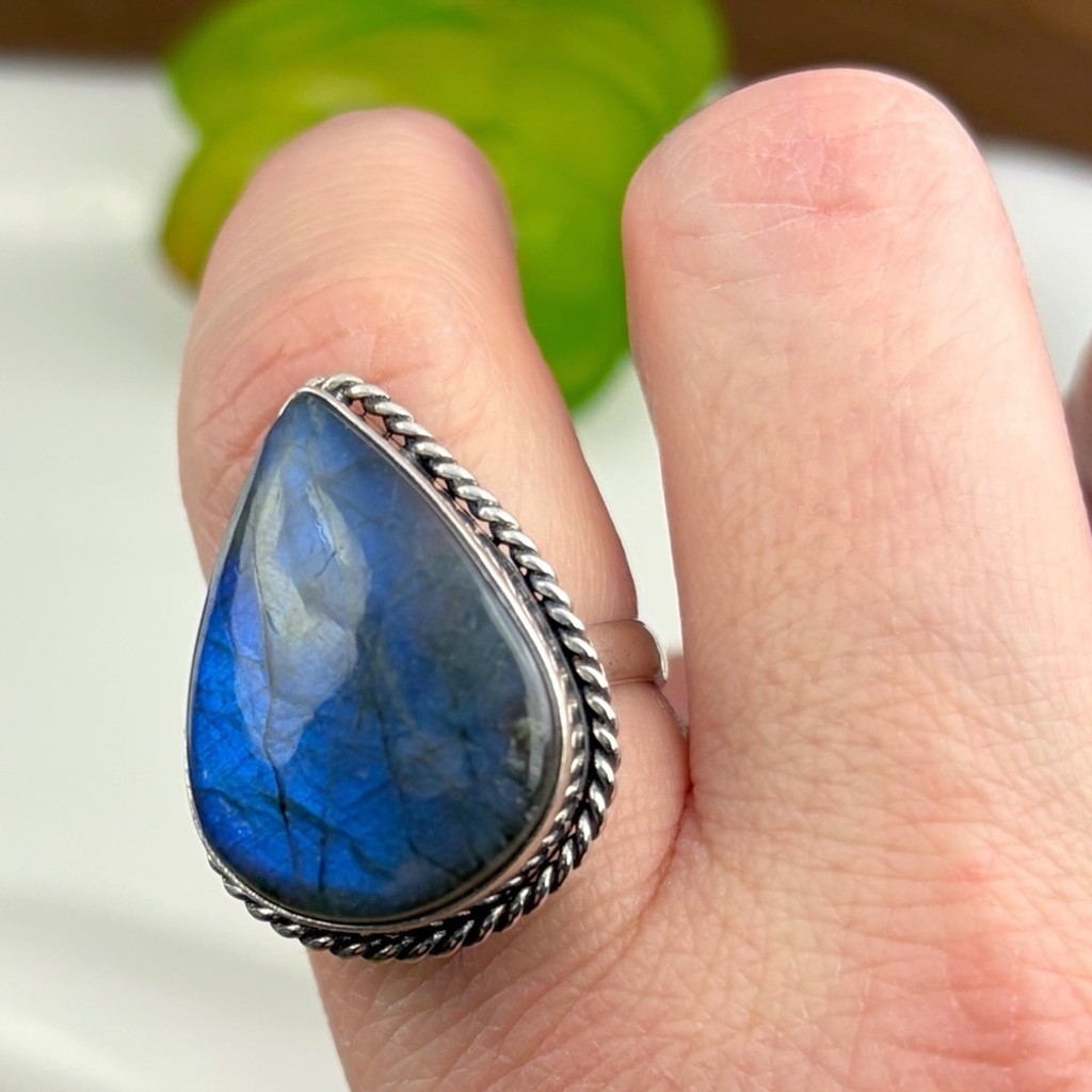 как выглядит Blue Labradorite Ring Size 9 1/2 9.5 Sterling Silver 925 Overlay Vintage Boho фото