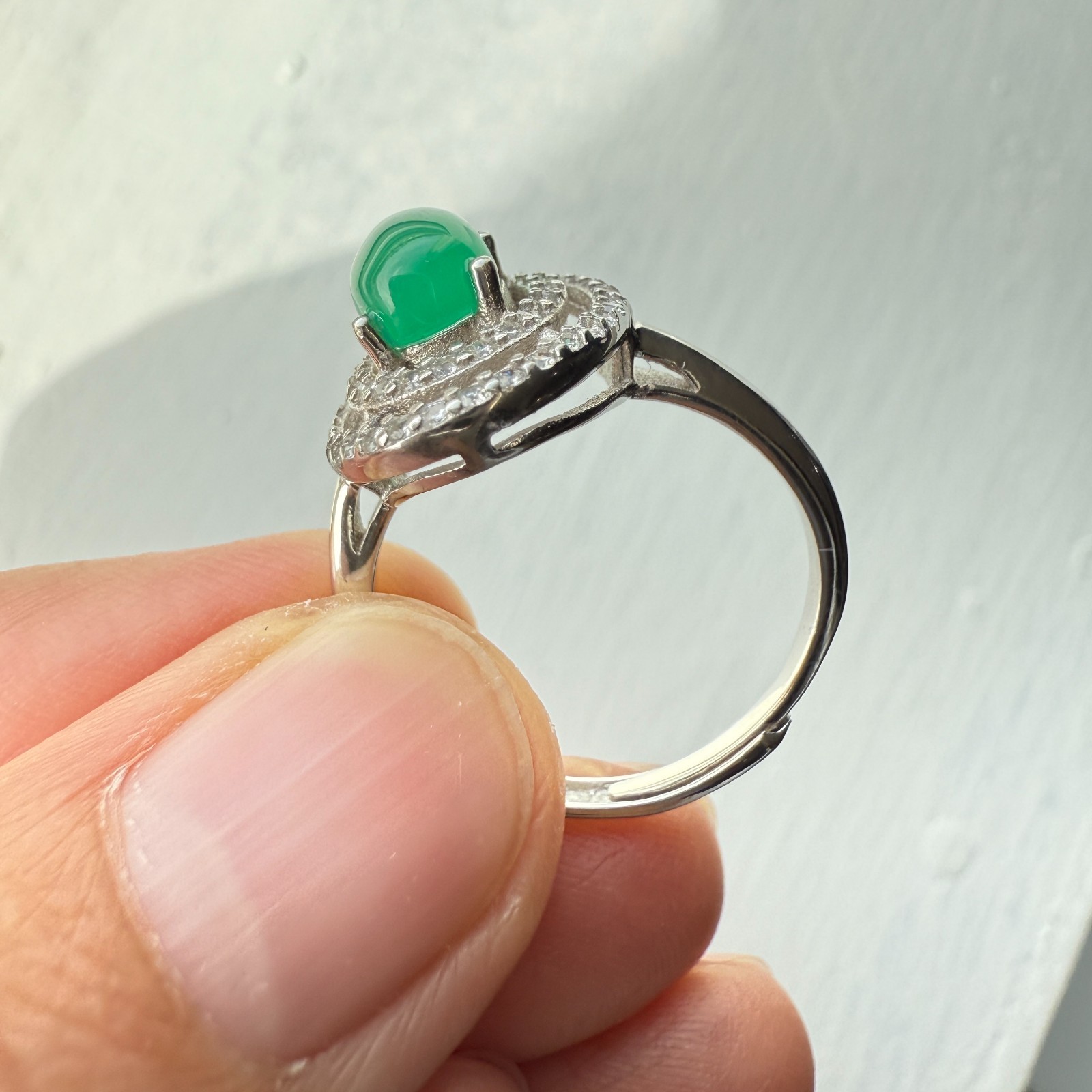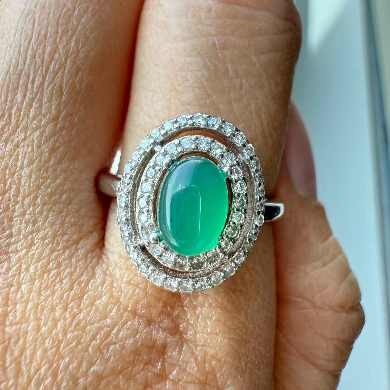 925 Sterling Silver Ring Oval 7x5mm Green Natural Emerald Gemstone Zircon Bridal