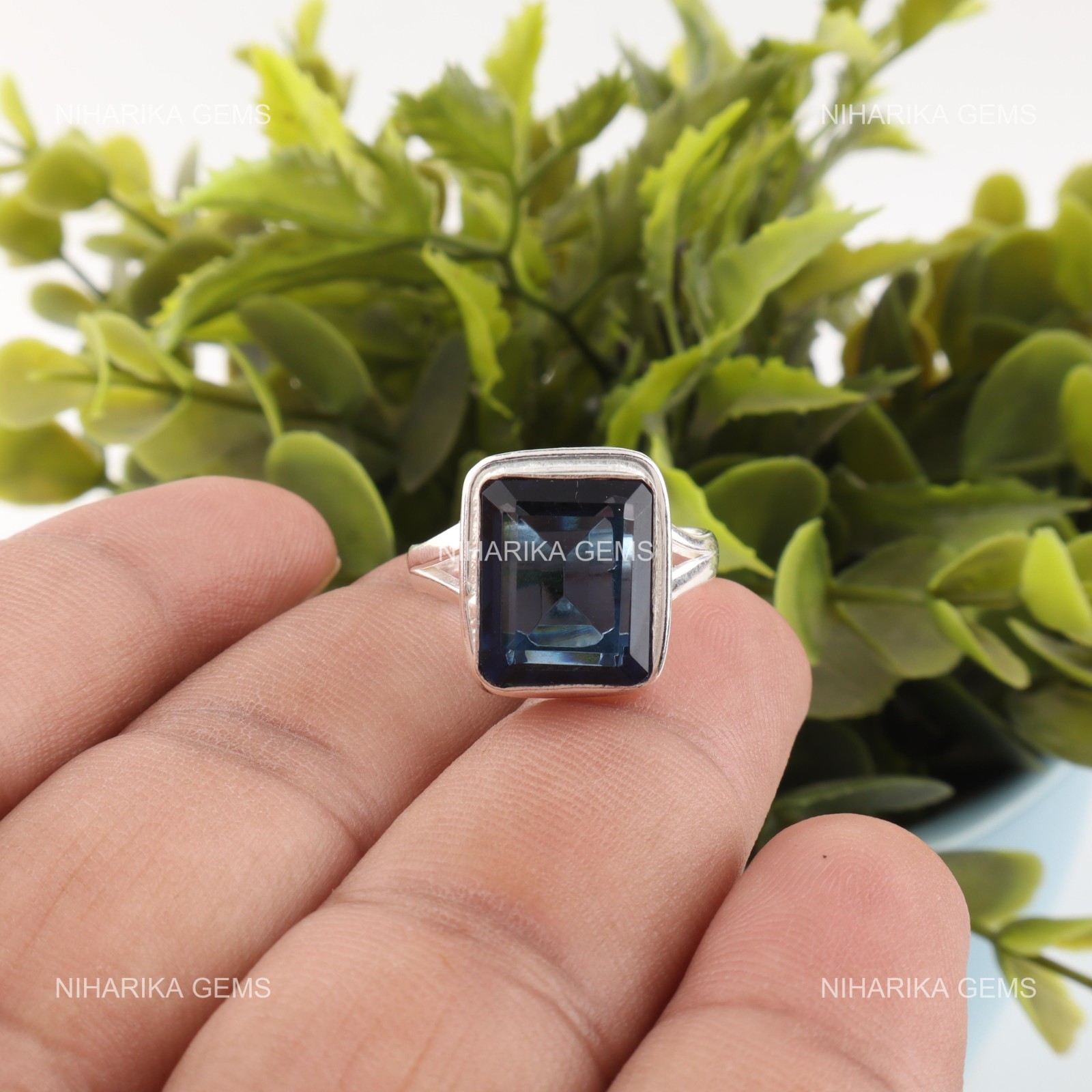 Rectangle London Blue Topaz Gemstone Solitaire Ethnic Wedding Ring 925 Silver
