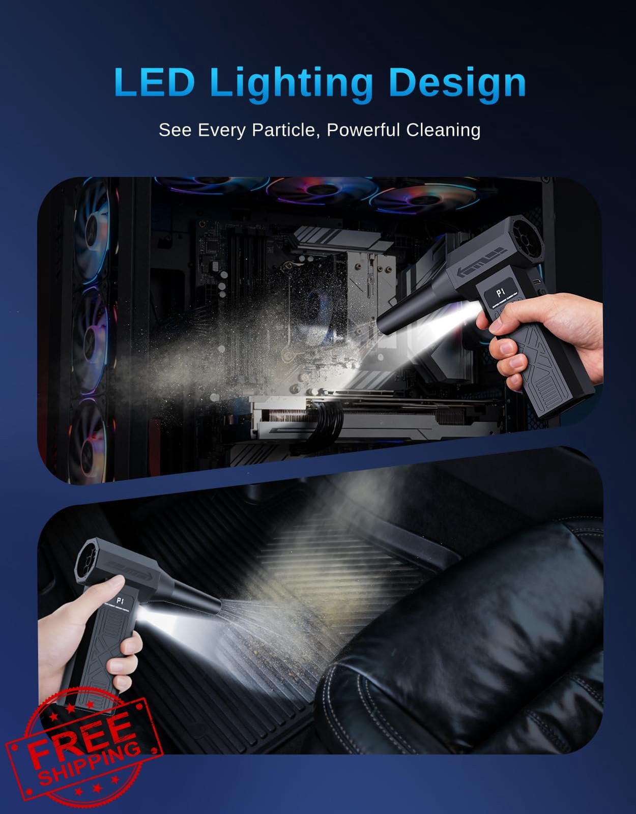 как выглядит PECODE Rechargeable Air Duster, Electric Blower for Keyboard, PC, Car, 280k RPM фото