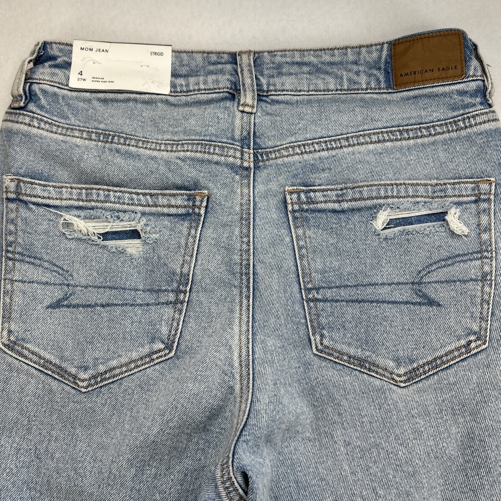 American Eagle Jeans Strigid Distressed Mom Jean High Rise Size 4 27 Waist NWT