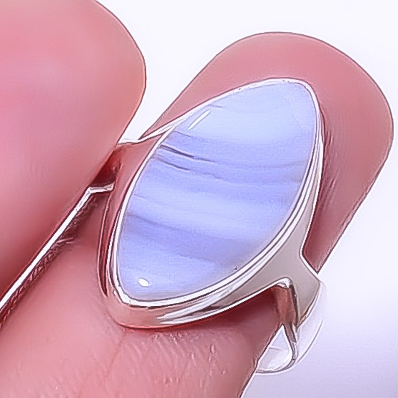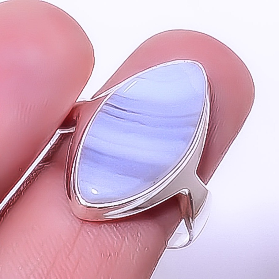 как выглядит Namibian Blue Lace Agate 925 Sterling Silver Solitaire Ring s.9 R761-17 фото