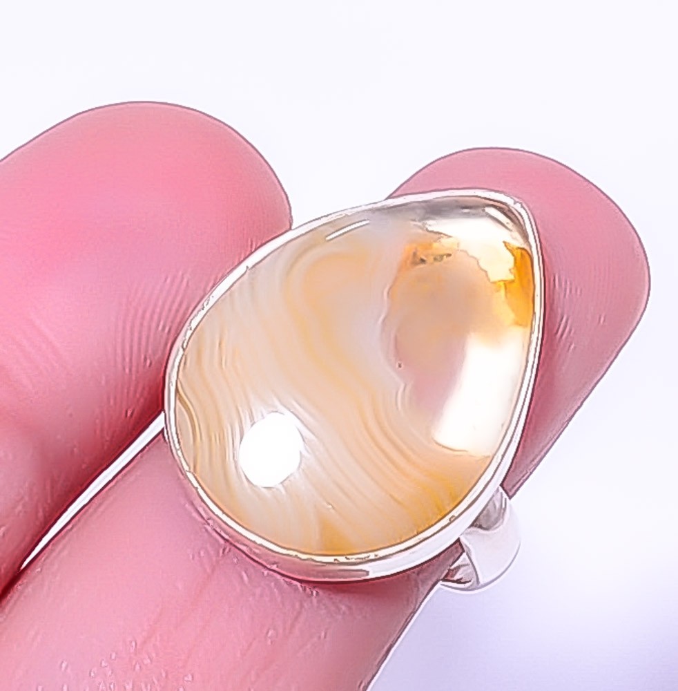 как выглядит Yellow Banded Agate Handmade Gemstone 925 Sterling Silver Jewelry Ring s.7 A322 фото