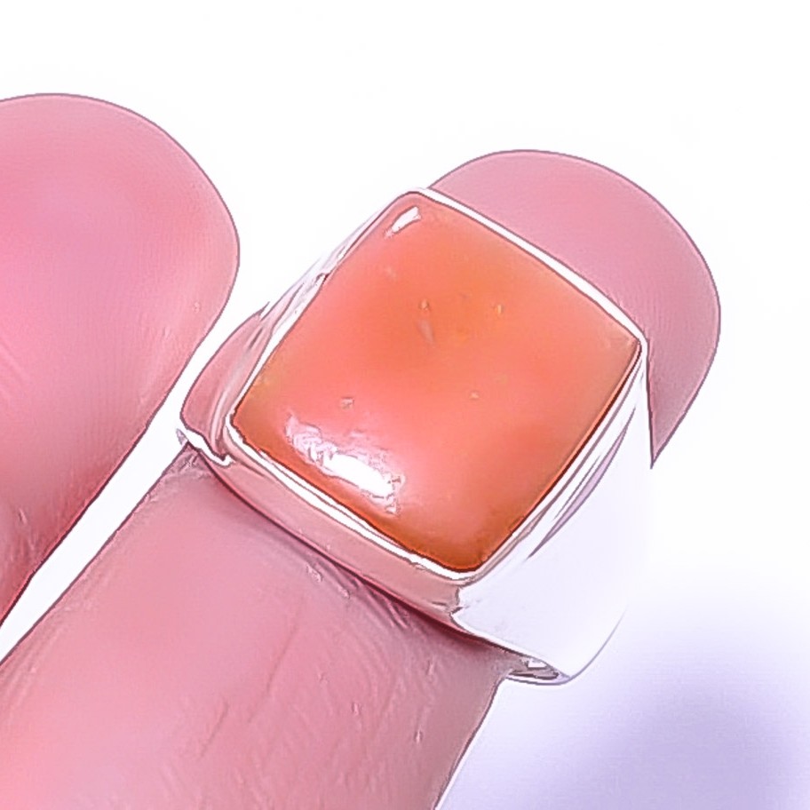 как выглядит Baby Pink Opal - Peru Gemstone 925 Sterling Silver Solitaire Ring s.8.5 A383 фото