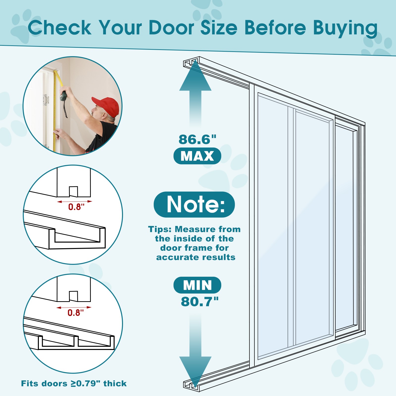 Adjustable Dog Door for Sliding Glass Doors - No-Cut, Height 68.9 to 92.5.