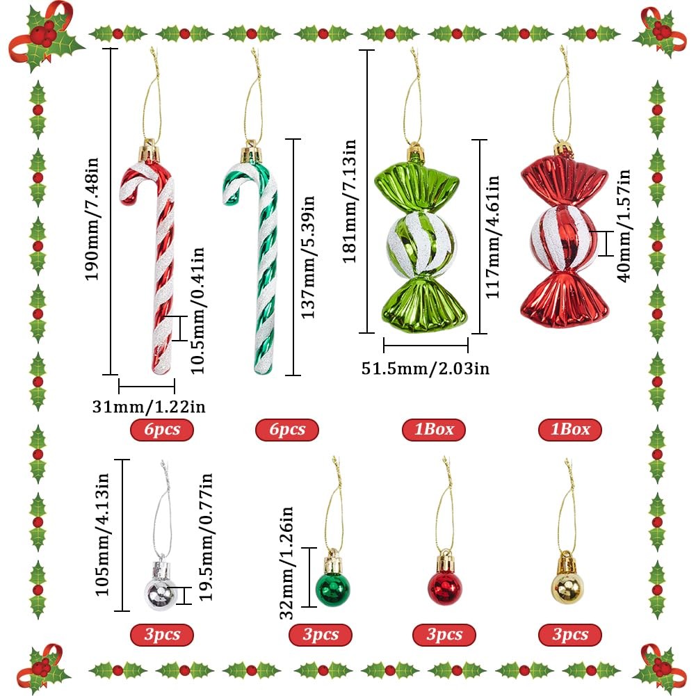 как выглядит 32Pcs Candy Cane Ornaments Christmas Ornament Set Gold Silver Hanging Ornamen... фото