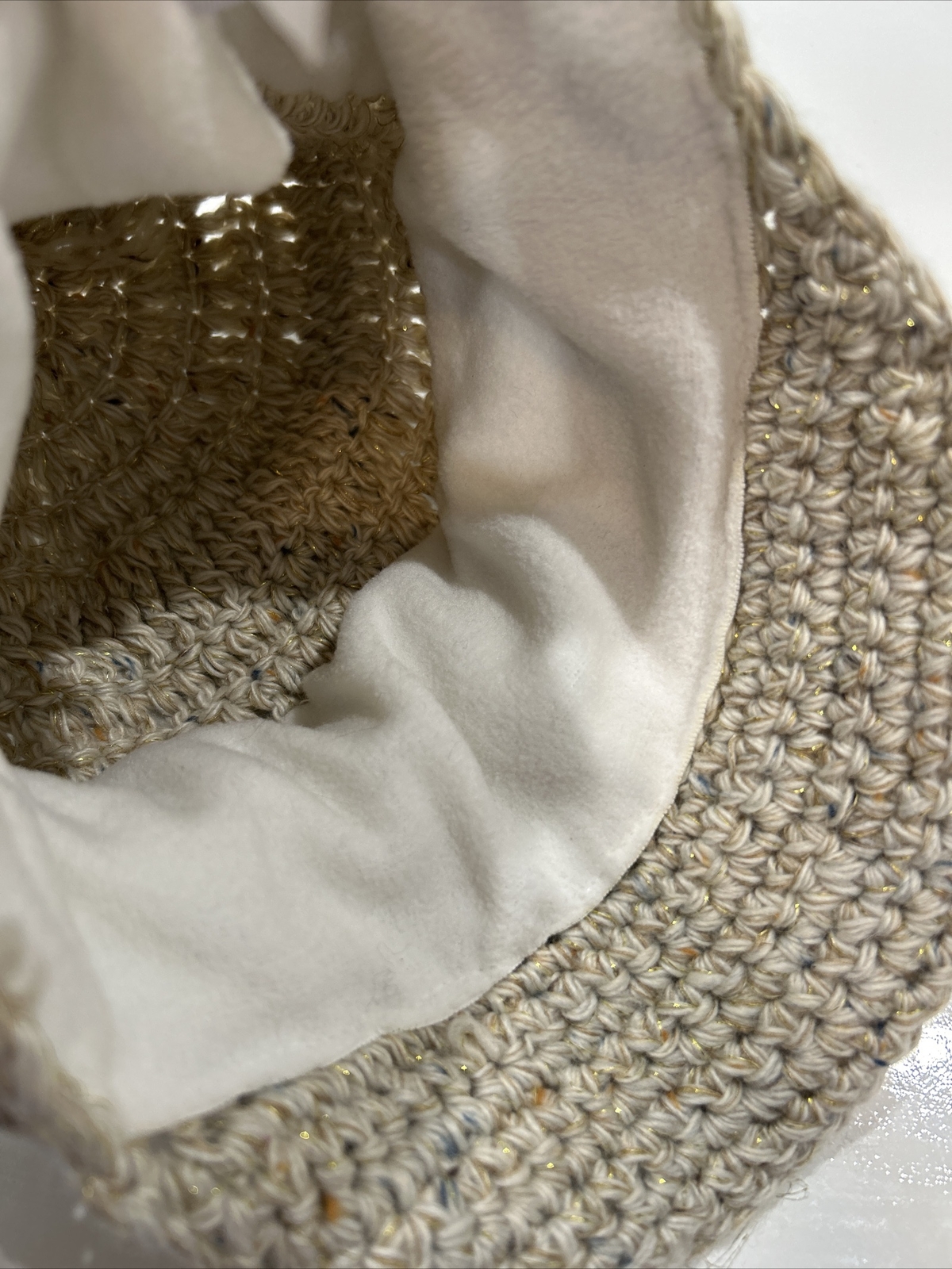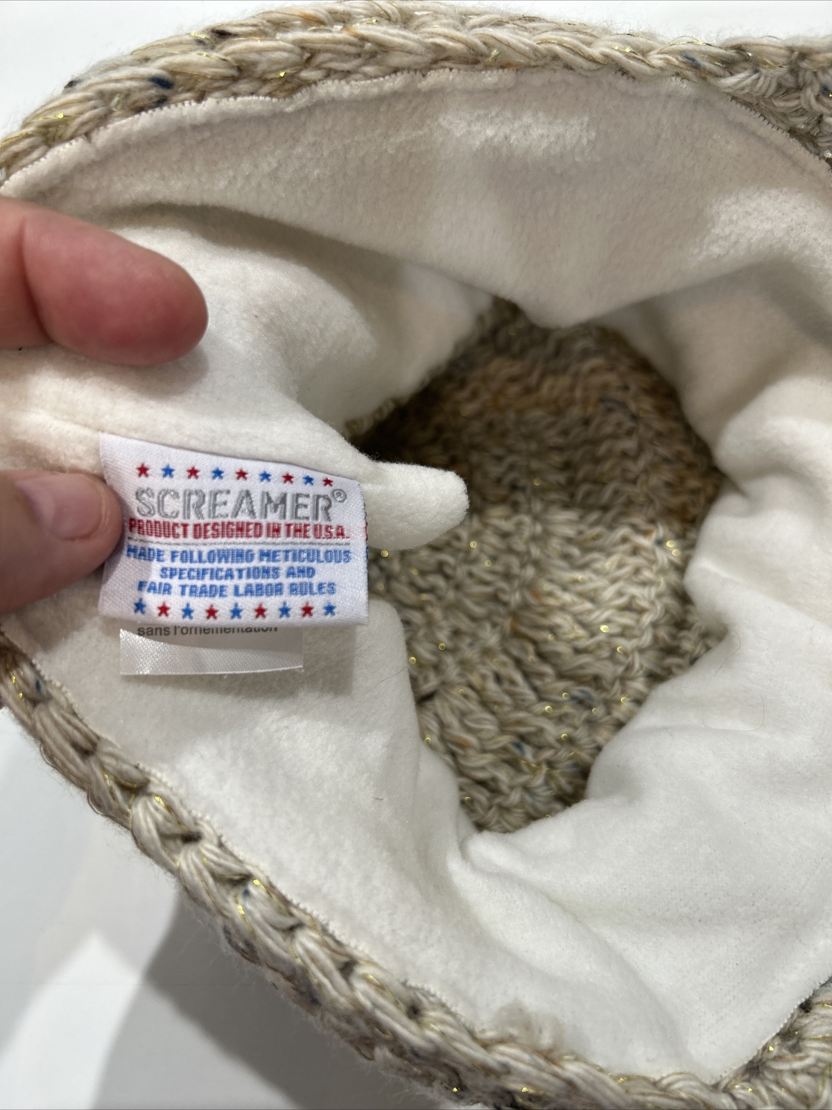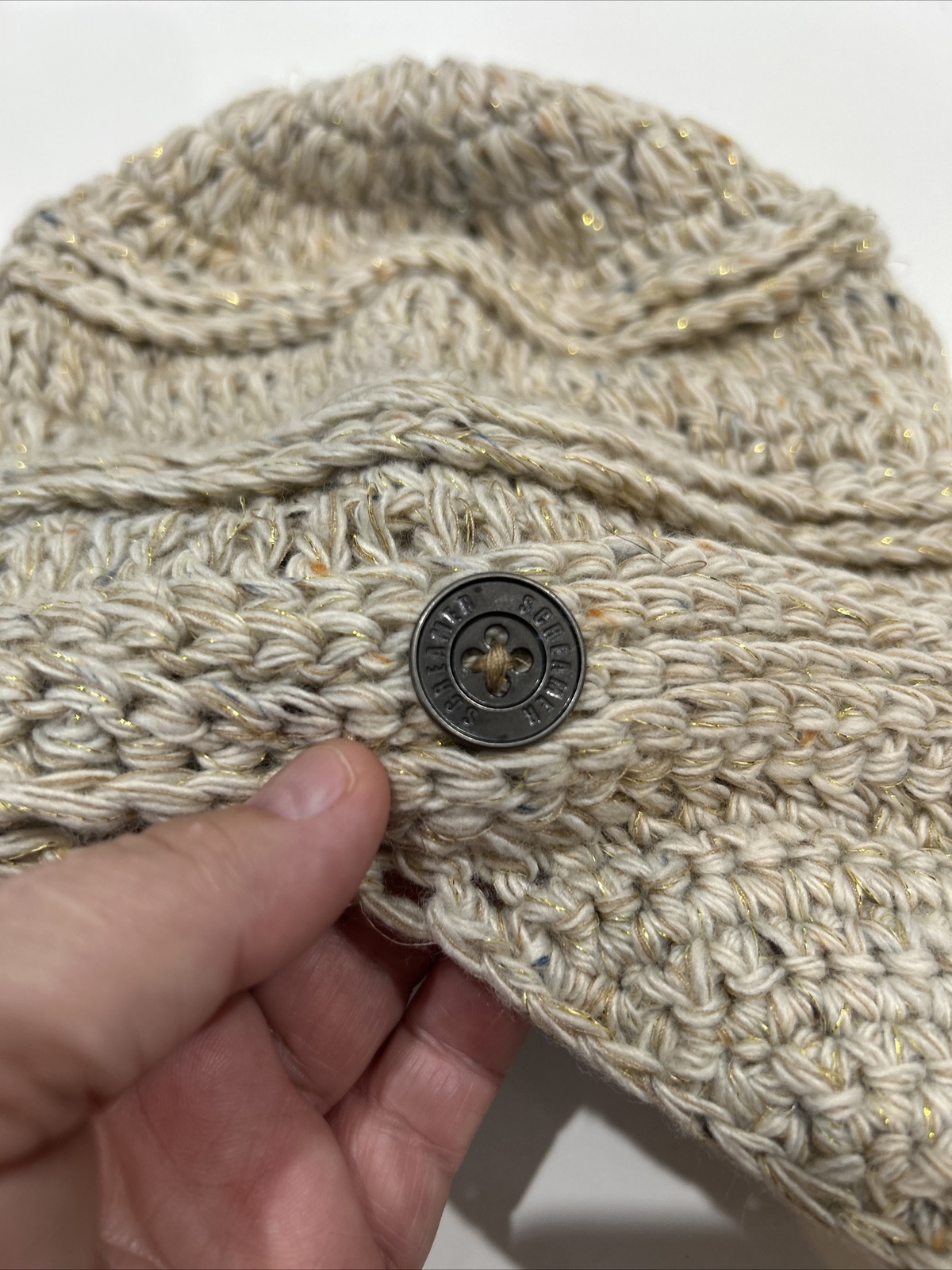 Screamer Gold Tan Brimmed Beanie Winter Hat Fleece Band Warm Lined