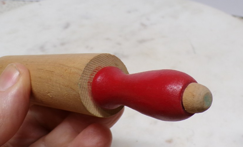 • Vintage Childs-Children's Wood Red Handled Rolling Pin For Cooking-Baking Toy-C