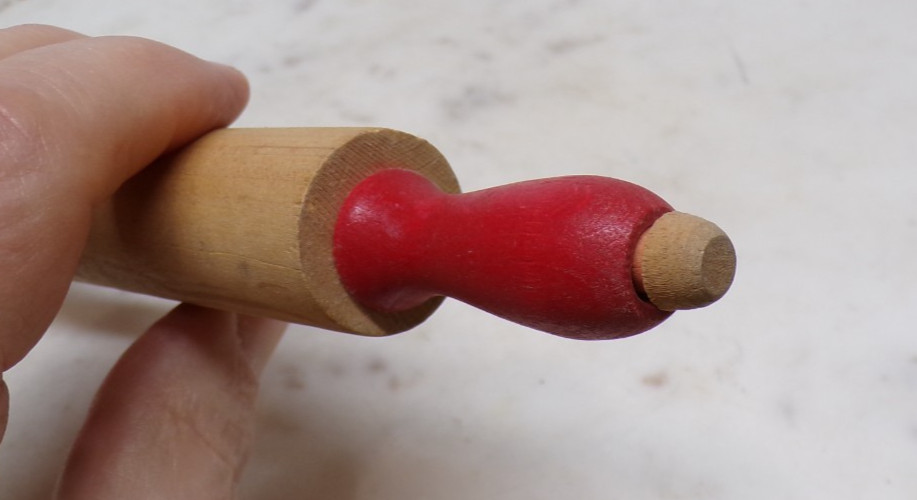 как выглядит Vintage Childs-Childrens Wood Red Handled Rolling Pin For Cooking-Baking Toy-C фото
