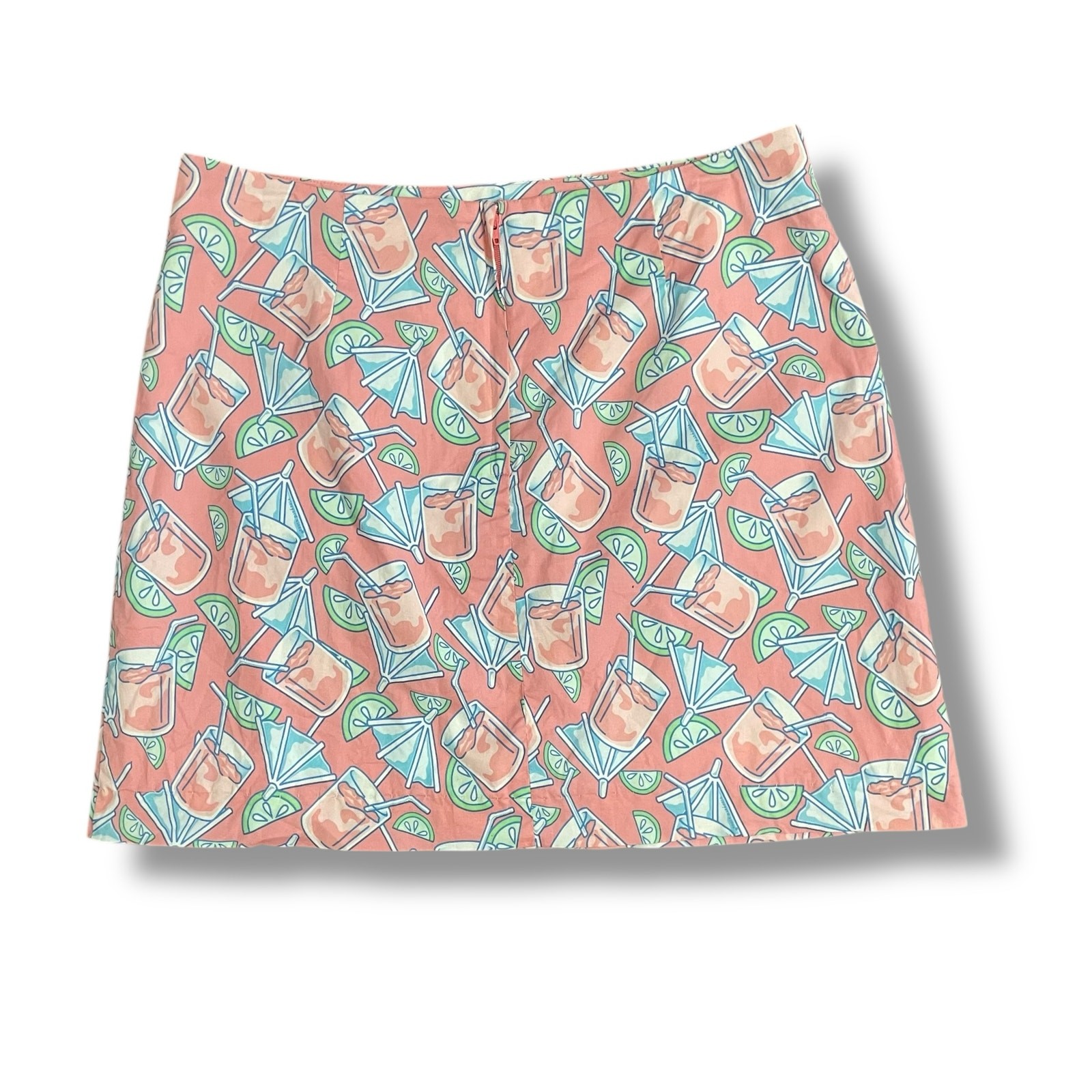 Vineyard Vines Pink Cocktail Print A-Line Skirt Size 8 Cotton Stretch