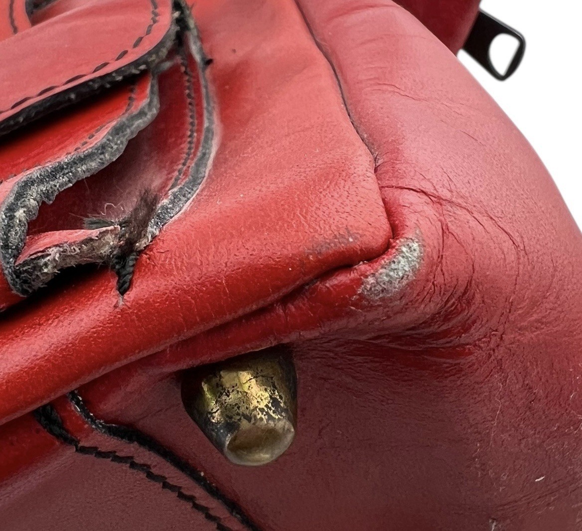 Vintage 1970 s Red Leather Handbag Purse Brass Accents John Romain Marcolino