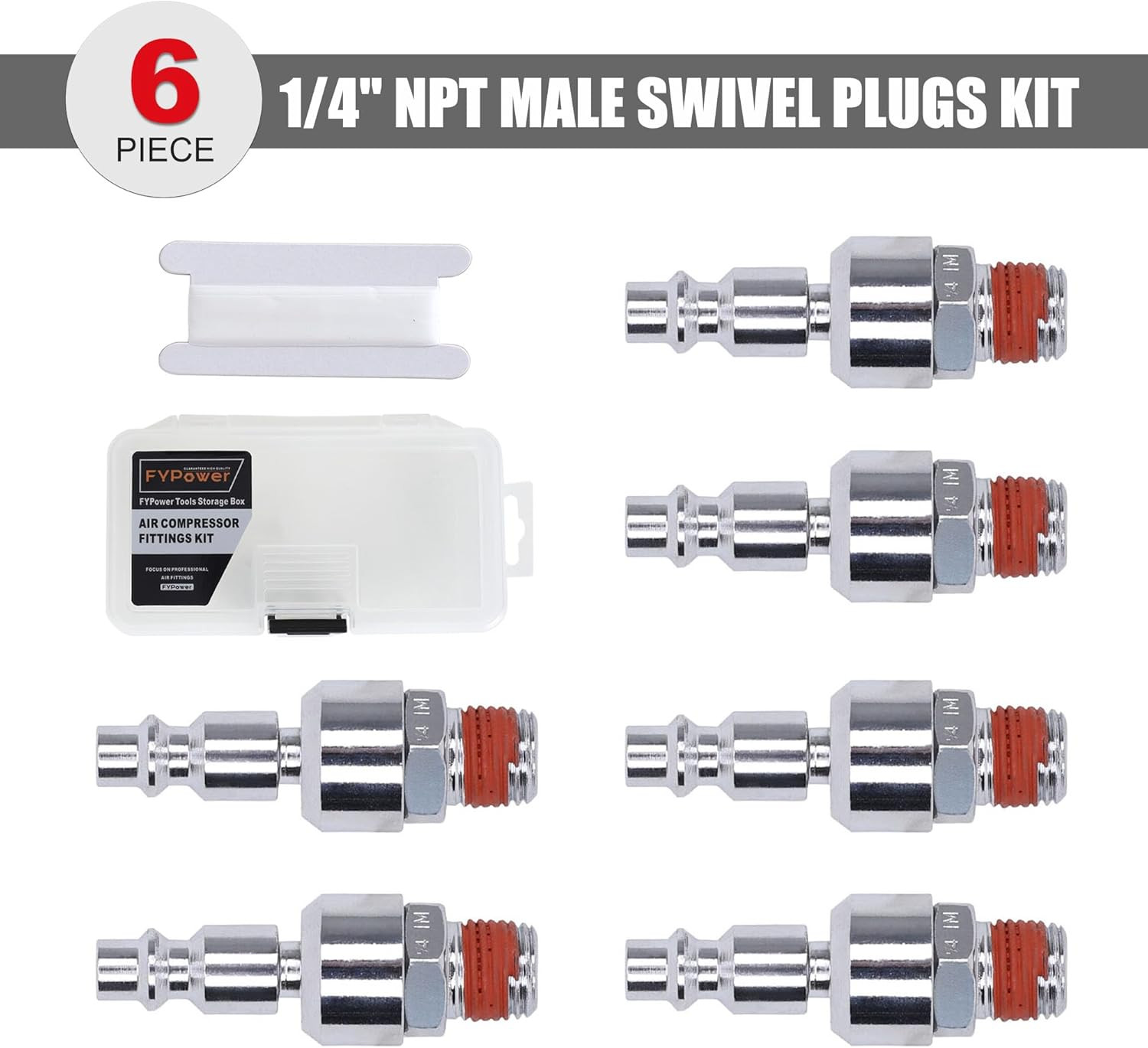 Included Components: 6 Pieces 1/4" NPT Male Industrial Swivel Plugs Kit