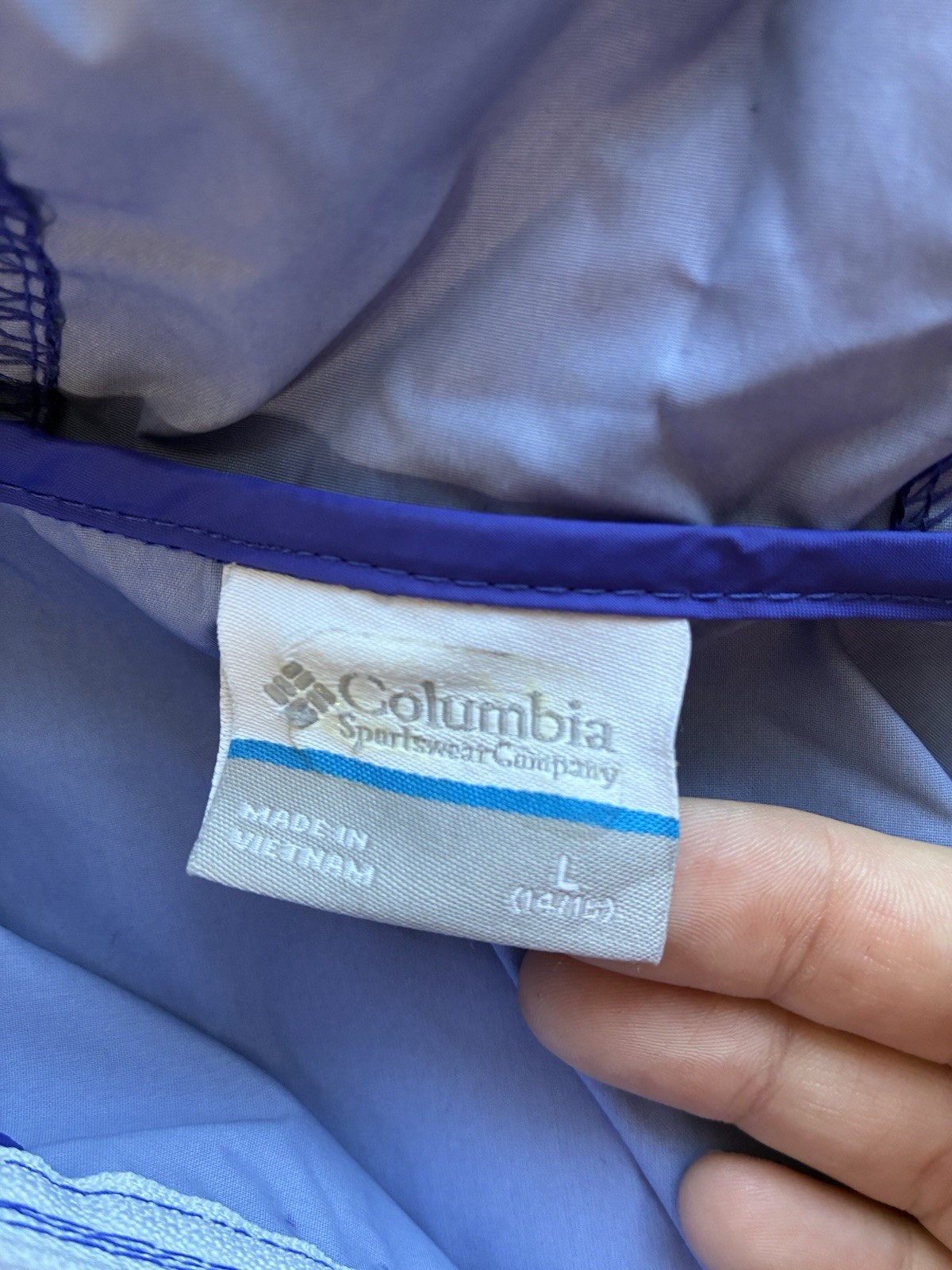 как выглядит Columbia Jacket Girls Large 14/16 Purple Hooded Rain Windbreaker Full Zip фото