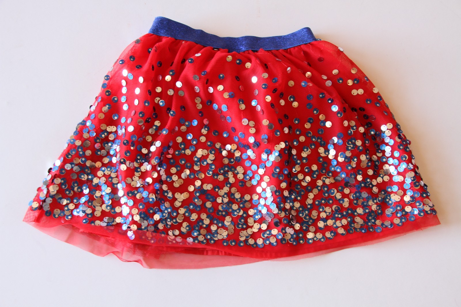 как выглядит Cat Jack Girls M Ages 7/8 Party Dance Skirt Tutu Sequin Red White Blue Star фото