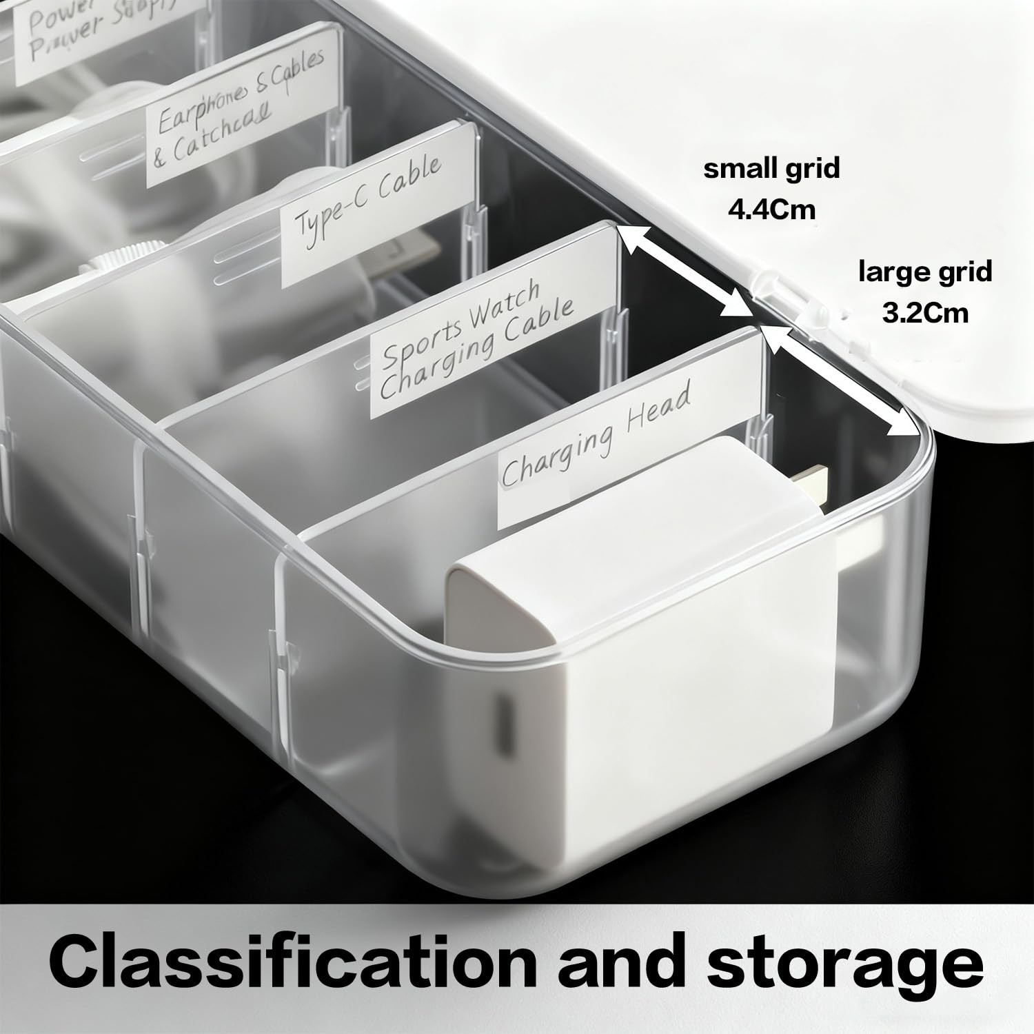 Cord Organizer Box with Lid, 7 Compartment Cable 1pack, white clear