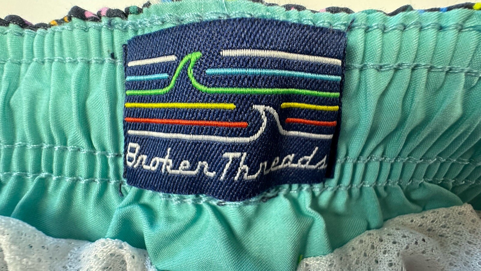 Broken Threads Mens Swim Trunks Navy Pineapple Mesh Brief Pockets Size S NWT