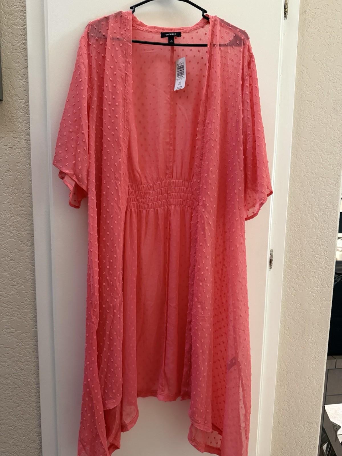 Torrid Coral Pink Chiffon Clip Dot HiLo Flowing Open Front Kimono size 3 NWT