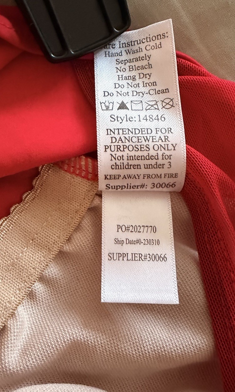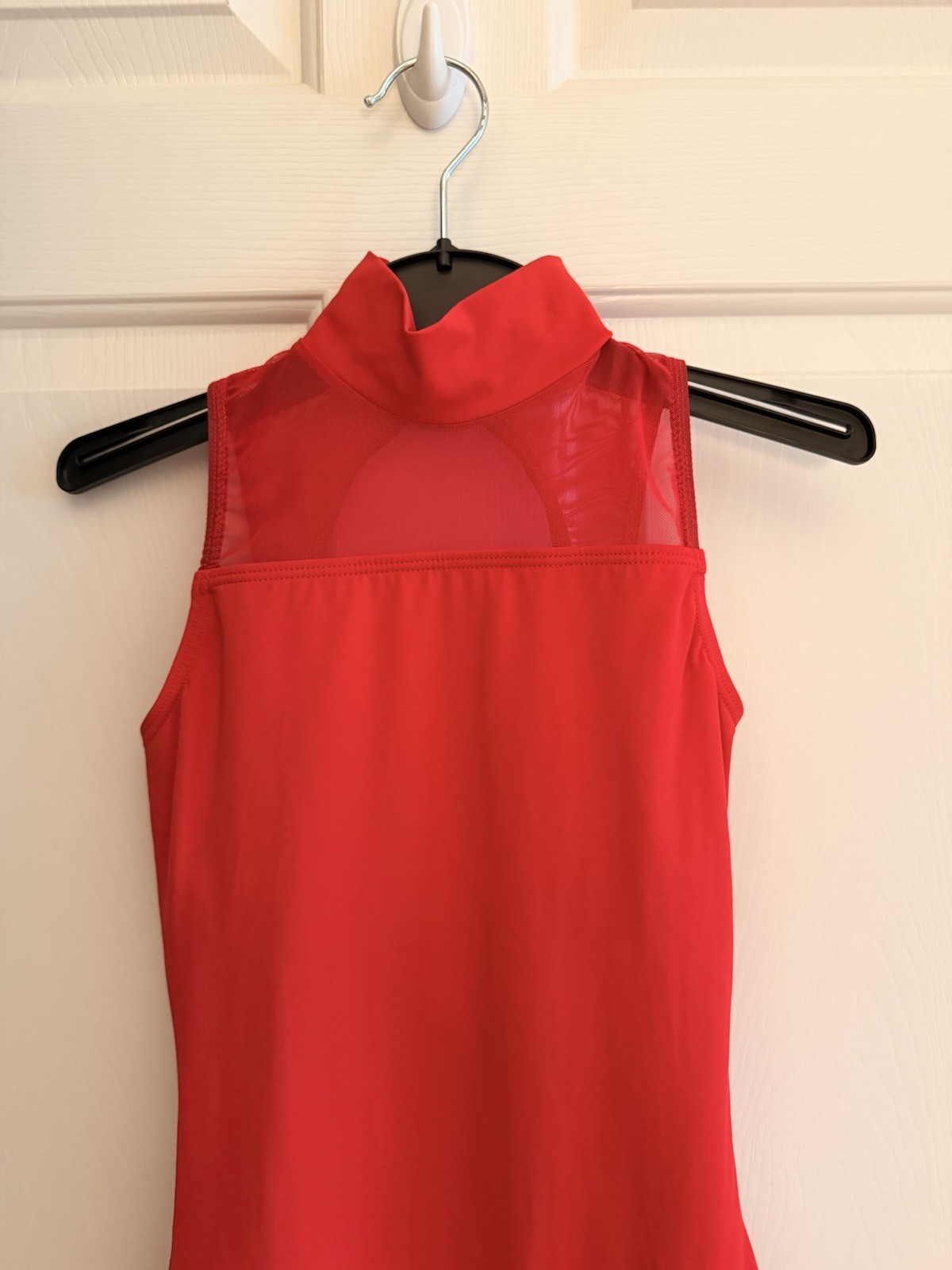 Weissman Red Mock Neck Mesh Inset Leotard, Sz Adult Small 14846