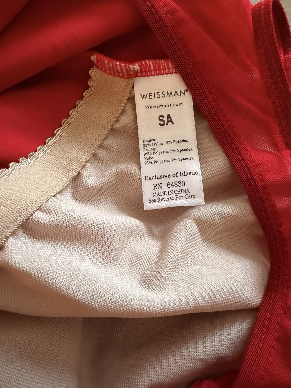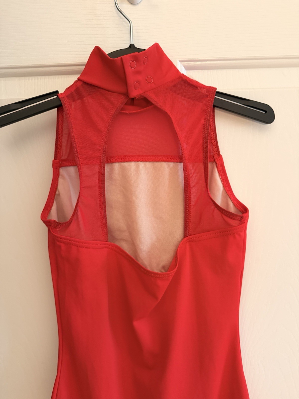 как выглядит Weissman Red Mock Neck Mesh Inset Leotard, Sz Adult Small 14846 фото