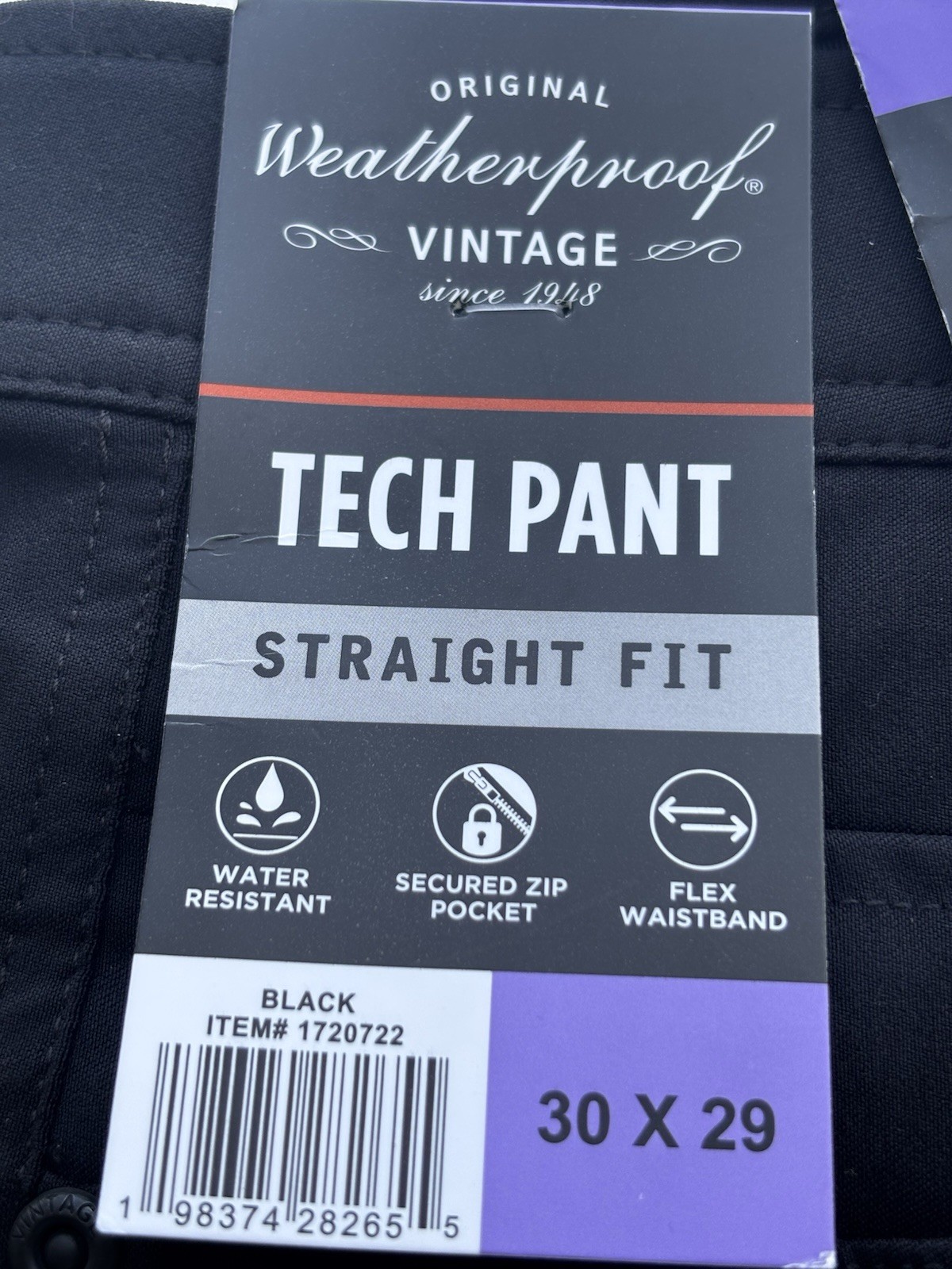 Weatherproof Vintage Men s Tech Pants Straight Fit Water-Resistant Black 30x29