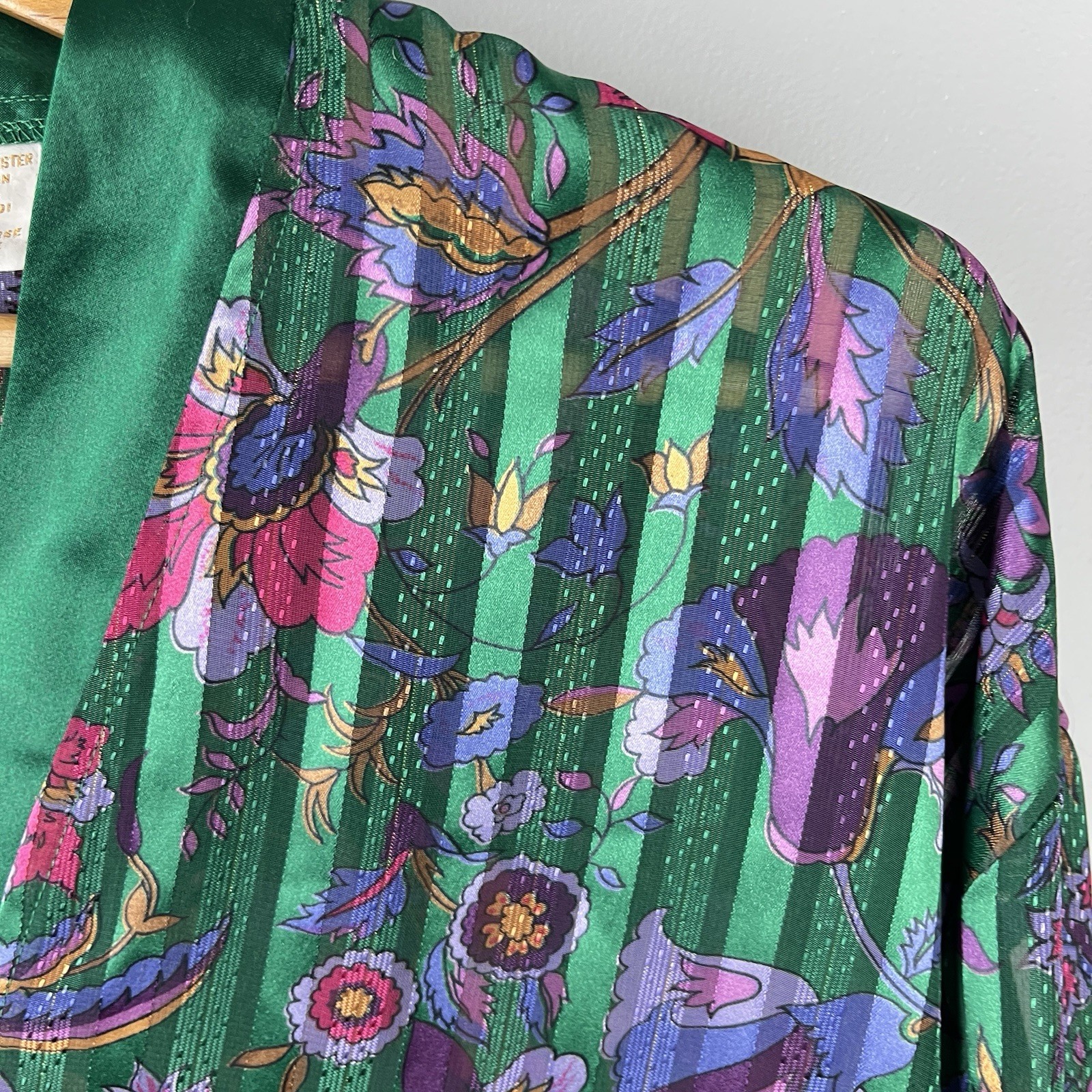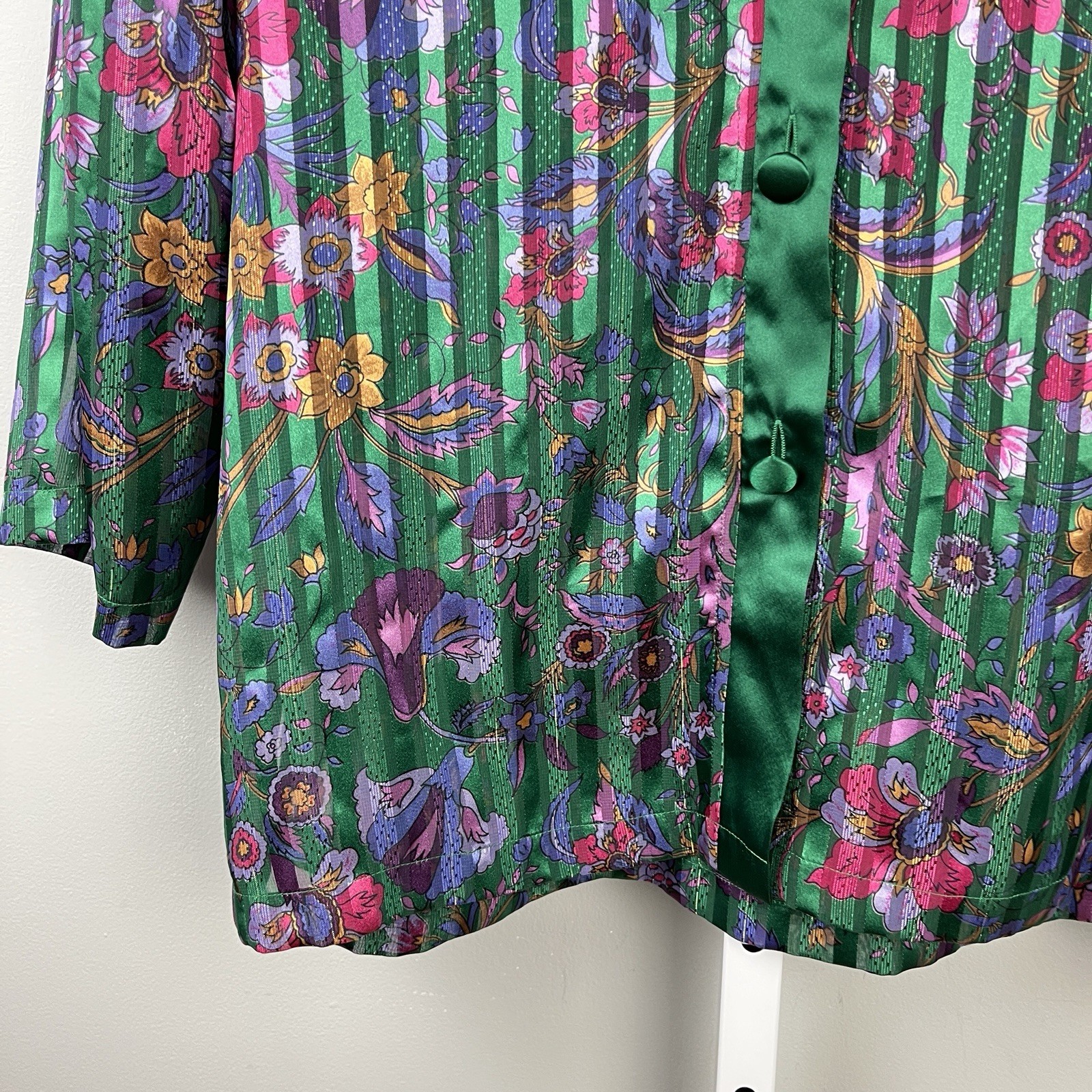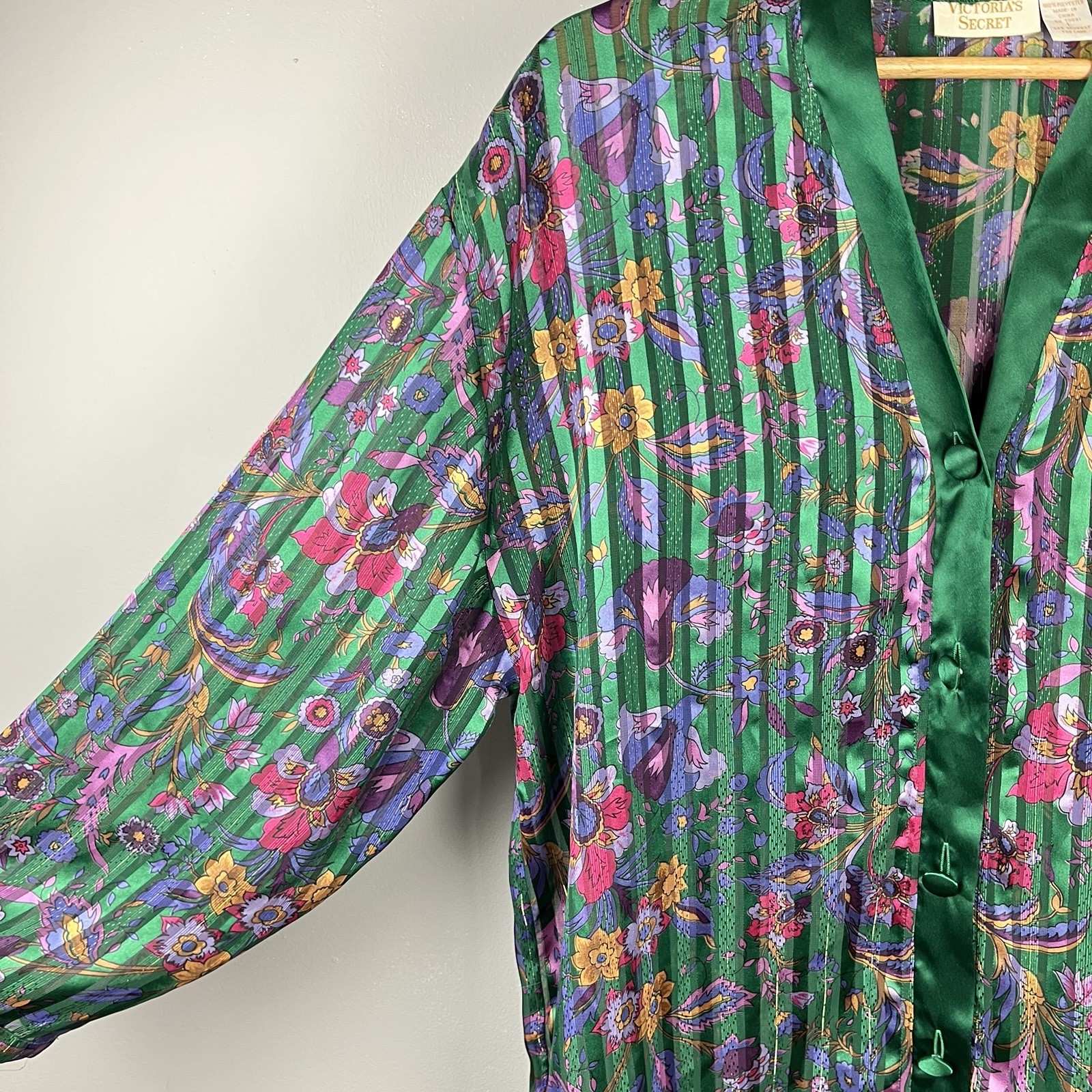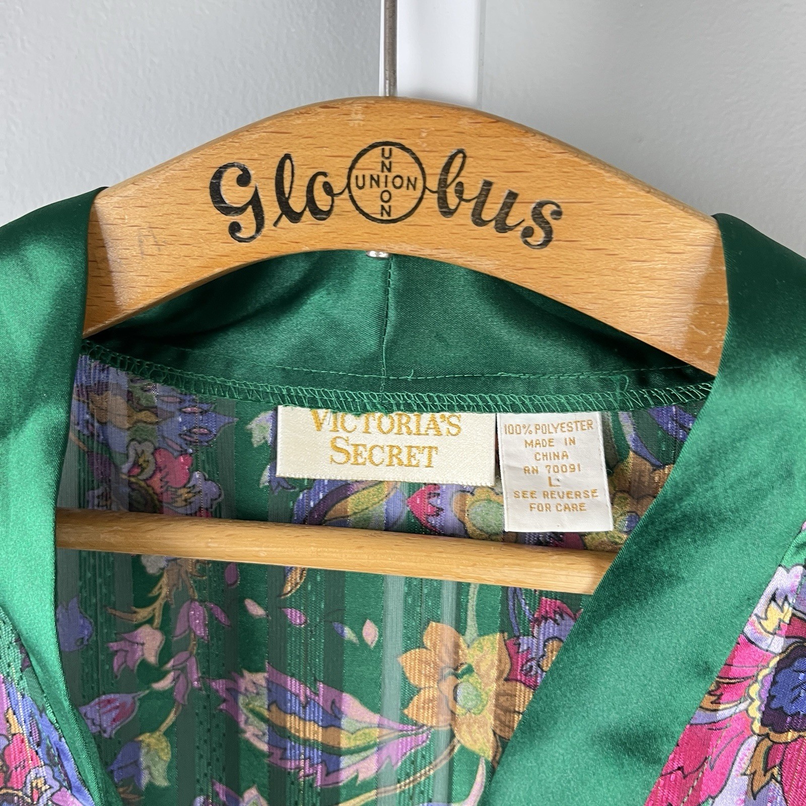 Vintage Victoria's Secret Pajama Top Womens L Green Satin Floral Gold Label