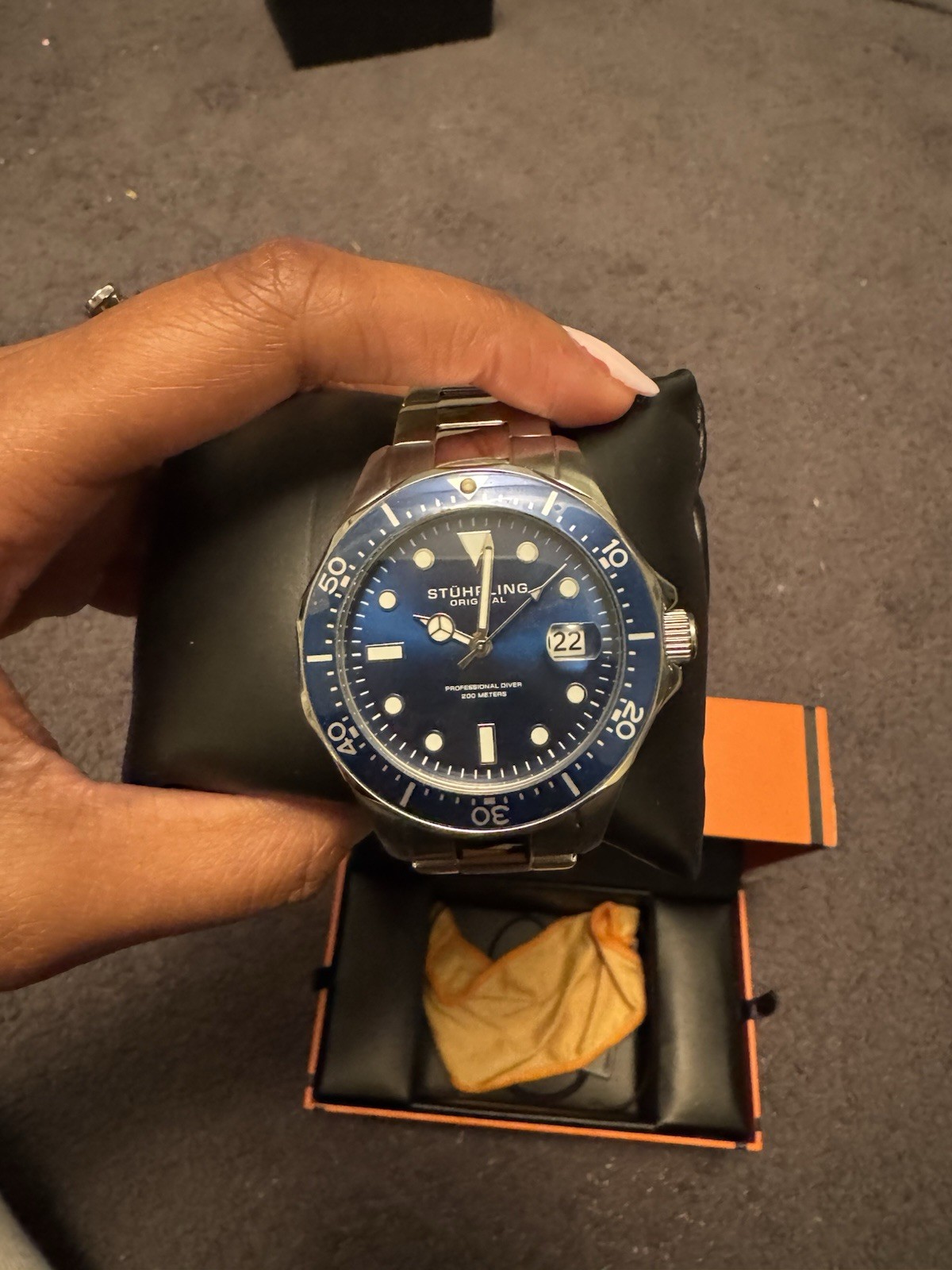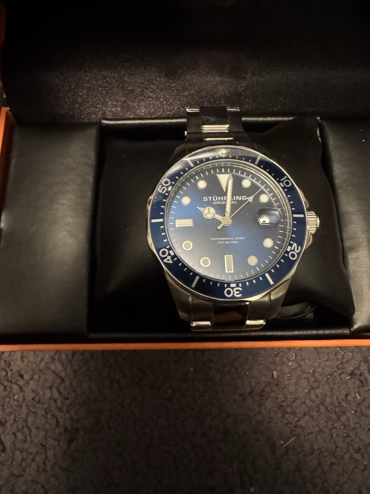 как выглядит St hrling Professional Diver Blue Dial Stainless Steel Mens Wristwatch 200m Box фото