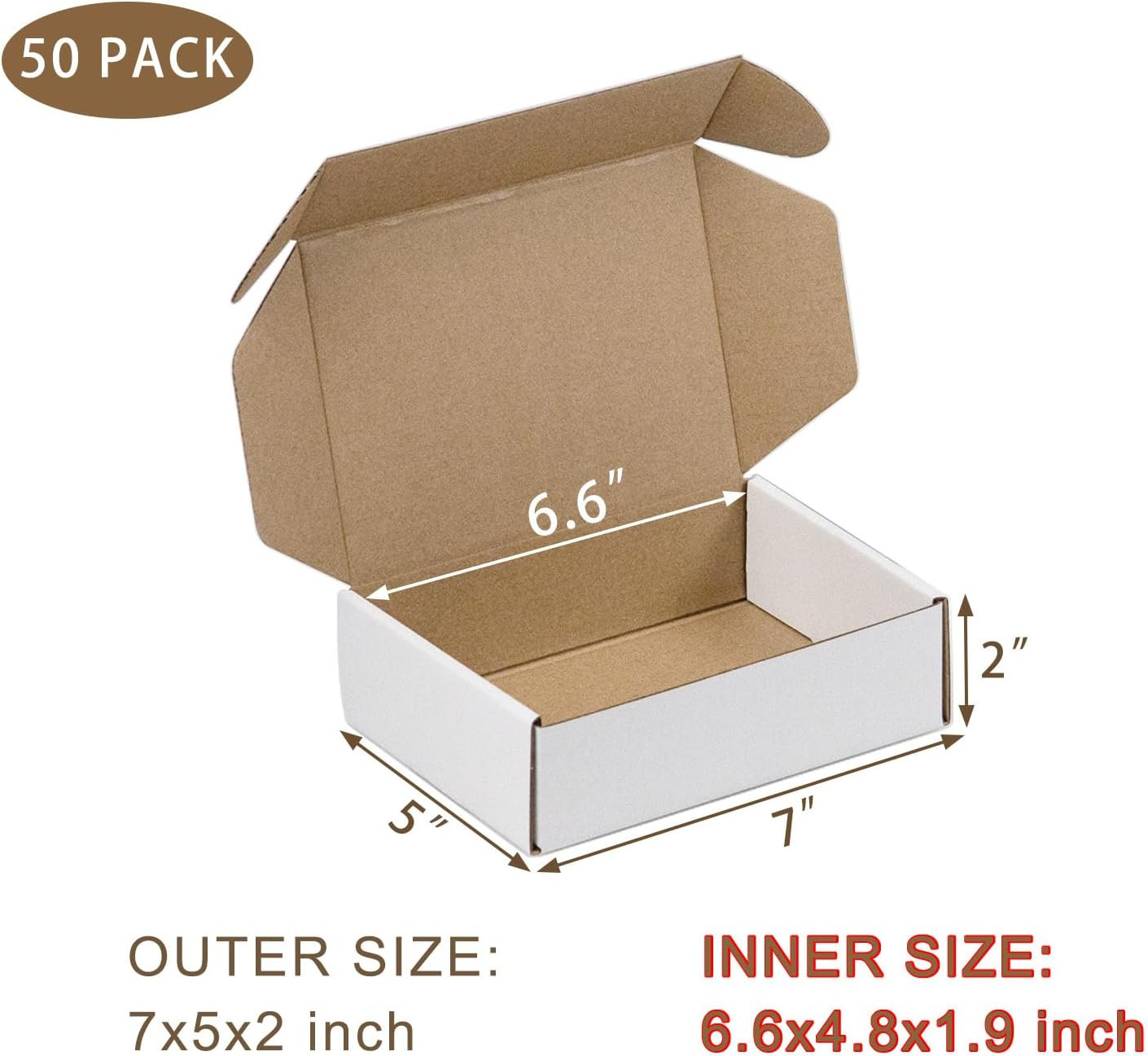 50 Pack 7X5X2 Inches Small Shipping Boxes, White Corrugated Cardboard Boxes, Mov