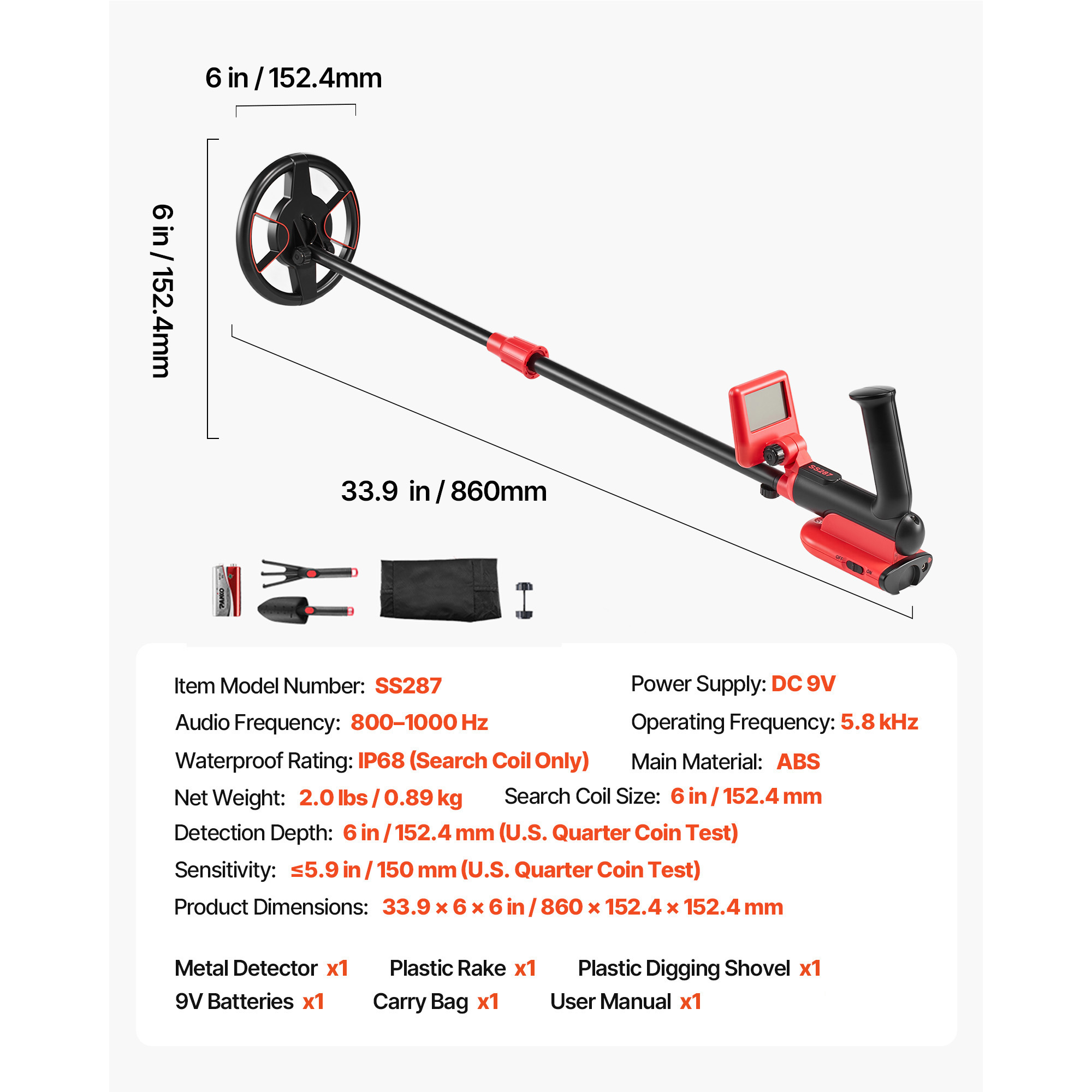 Search Coil Size(type 1/2/3/4): 12 in / 8 in / 8.9 x 11.2 in / 6 in