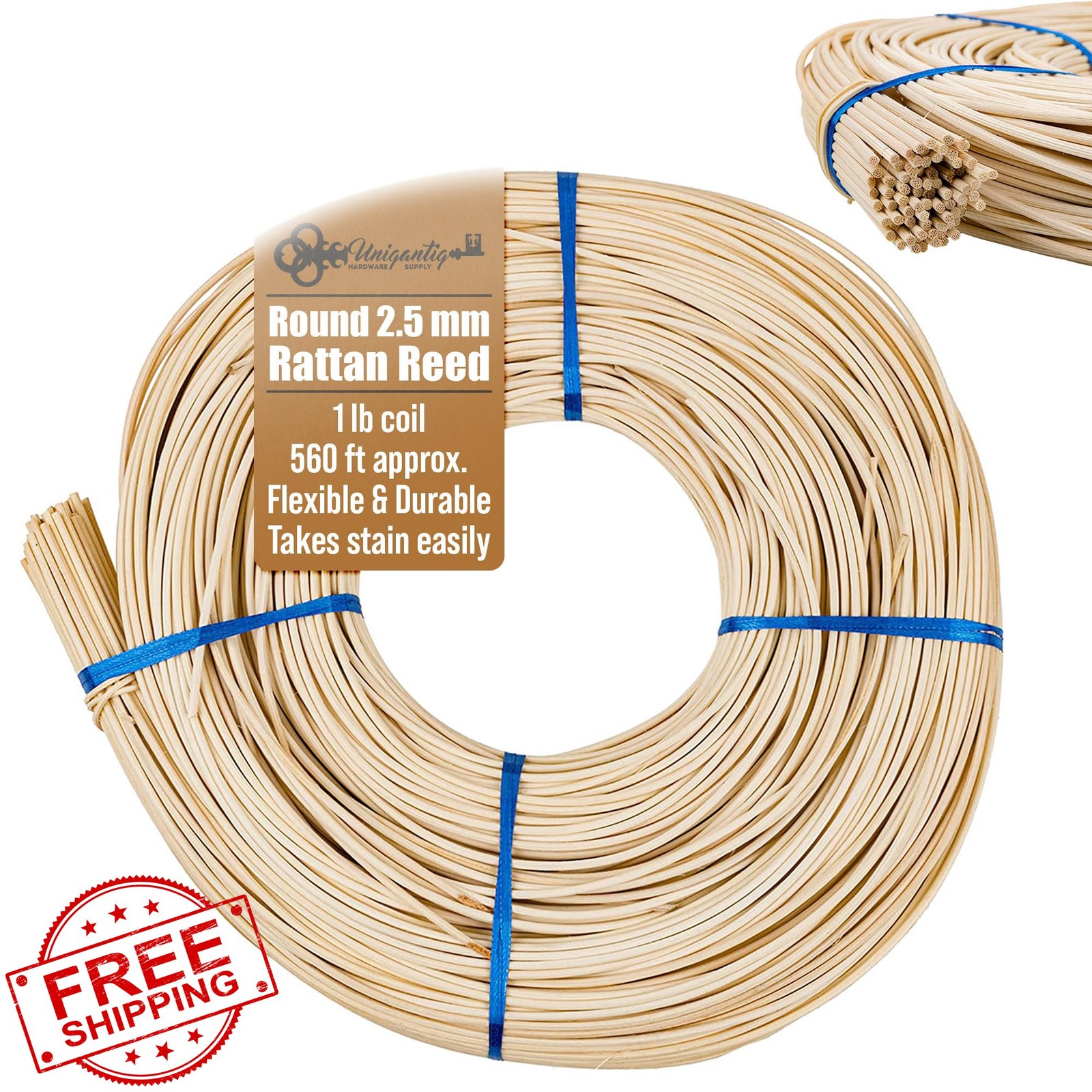 2.5mm Round Reed Coil 1lb Rattan for Basket Weaving